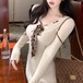 【2点セット】2色/Vネックニット+ボーダーホルターネックトップス ・73732