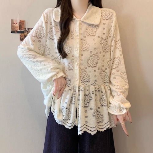 3色/サイドリボンペプラムシャツ ・74126