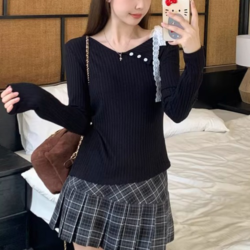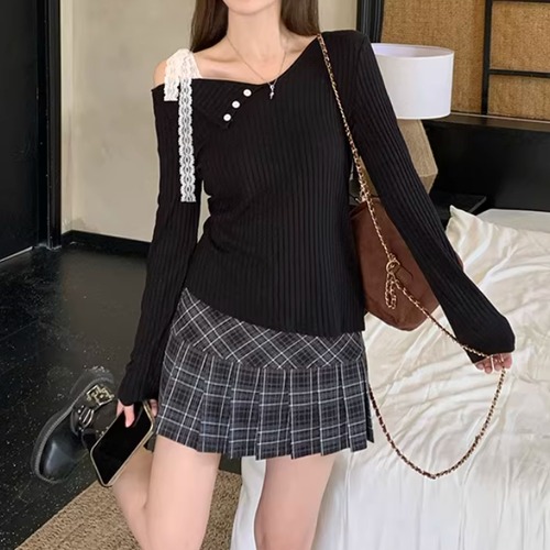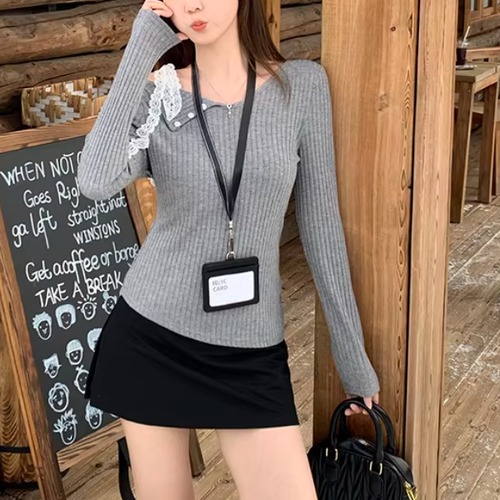 レースカラーアシメボタンドッキングトップス ・71106