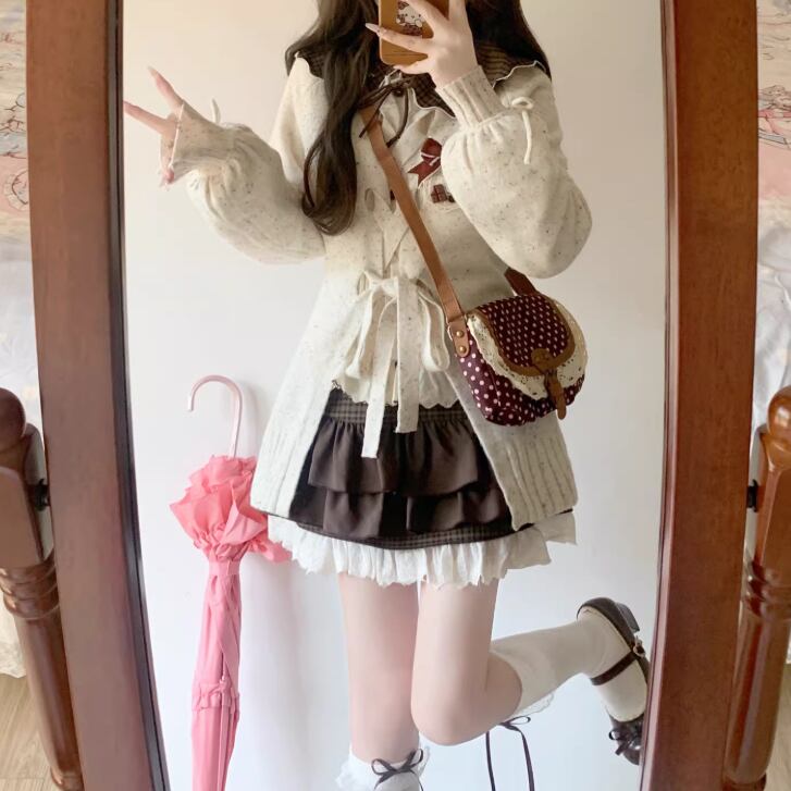 ▽Instagram「新作情報配信中」 フォローお願いいたします。 https://www.instagram.com/sucrier_closet/ ▼サイズ [ Sサイズ ] カーデ:着丈65cm バスト82cm 袖丈72cm ウエスト62cm ブラウス:着丈52cm バスト80cm 袖丈61cm スカート:着丈37cm ウエスト62-66cm [ Mサイズ ] カーデ:着丈66cm バスト86cm 袖丈73cm ウエスト66cm ブラウス:着丈53cm バスト84cm 袖丈62cm スカート:着丈38cm ウエスト66-70cm [ Lサイズ ] カーデ:着丈67cm バスト90cm 袖丈74cm ウエスト70cm ブラウス:着丈54cm バスト88cm 袖丈63cm スカート:着丈39cm ウエスト70-74cm [ XLサイズ ] カーデ:着丈68cm バスト94cm 袖丈75cm ウエスト74cm ブラウス:着丈55cm バスト92cm 袖丈64cm スカート:着丈40cm ウエスト74-78cm ※1-3cm程度の誤差がある場合がございます。予めご了承ください。 ▼シーズン 秋,冬 ▼同じカテゴリの商品はこちら https://www.sucrier.jp/categories/1737171 ▽お支払い方法 ・クレジットカード決済 ・キャリア決済 (docomo/au/Softbank/Y!mobile) ・後払い決済 (商品お届け後コンビニ払いなど) ▽注意点 ※こちらの商品は決済から10日-3週間前後でのお届けとなります。 ※配送日時指定等に関しては、ご指定できないことご了承くださいませ。 ※できる限り早くお届けできるように手配させて頂きます。 ※検品はしておりますが、もし届いた商品に不備がありましたら、誠実に対応させていただきます。 商品ID:SC074270