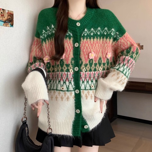 2色/ノルディック柄ポロカラーニットカーデ ・72764