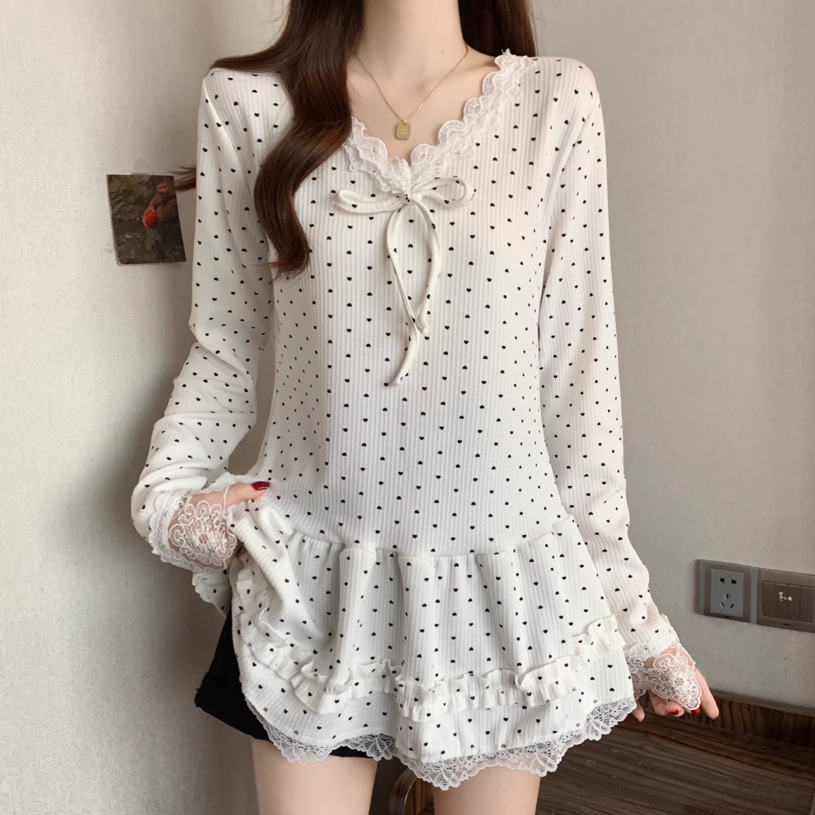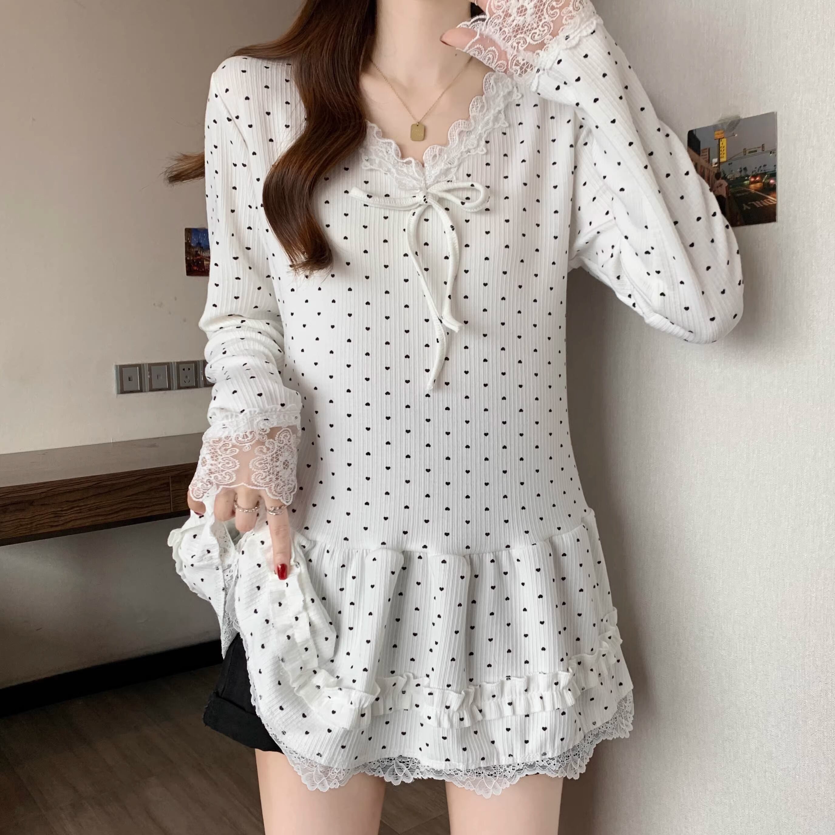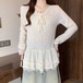 レースカラーアシメボタンドッキングトップス ・71106