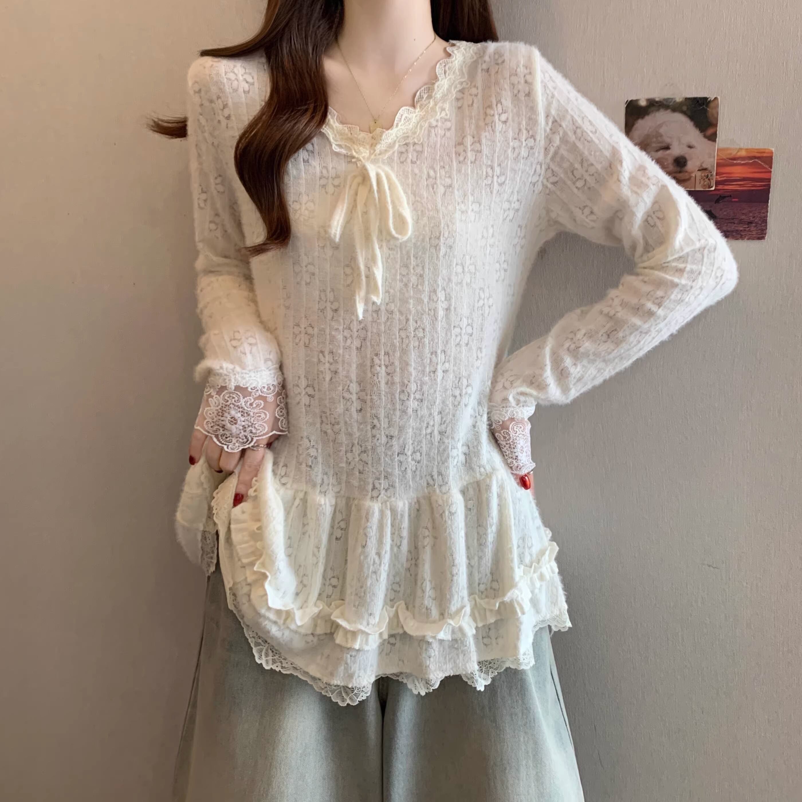 ▽Instagram「新作情報配信中」 フォローお願いいたします。 https://www.instagram.com/sucrier_closet/ ▼カラー アプリコットレース(画像2枚目) ドット(画像3枚目) ▼サイズ [ Mサイズ ] 着丈65cm バスト94cm 肩幅36cm 袖丈63cm [ Lサイズ ] 着丈66cm バスト98cm 肩幅37cm 袖丈64cm [ XLサイズ ] 着丈67cm バスト102cm 肩幅38cm 袖丈65cm [ 2XLサイズ ] 着丈68cm バスト106cm 肩幅39cm 袖丈66cm [ 3XLサイズ ] 着丈69cm バスト110cm 肩幅40cm 袖丈67cm [ 4XLサイズ ] 着丈70cm バスト114cm 肩幅41cm 袖丈68cm ※1-3cm程度の誤差がある場合がございます。予めご了承ください。 ▼シーズン 秋冬 ▼同じカテゴリの商品はこちら https://www.sucrier.jp/categories/1713095 ▽お支払い方法 ・クレジットカード決済 ・キャリア決済 (docomo/au/Softbank/Y!mobile) ・後払い決済 (商品お届け後コンビニ払いなど) ▽注意点 ※こちらの商品は決済から10日-3週間前後でのお届けとなります。 ※配送日時指定等に関しては、ご指定できないことご了承くださいませ。 ※できる限り早くお届けできるように手配させて頂きます。 ※検品はしておりますが、もし届いた商品に不備がありましたら、誠実に対応させていただきます。 商品ID:SC074264