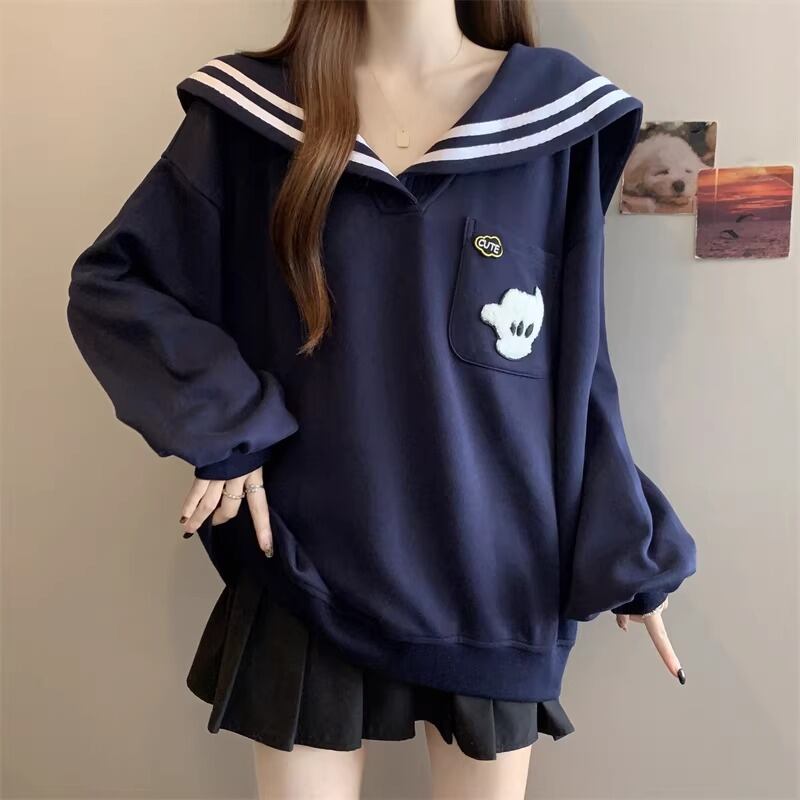 セーラーカラーエンブロイダリースウェットトップス ・74256