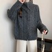 2色/ノルディック柄ポロカラーニットカーデ ・72764