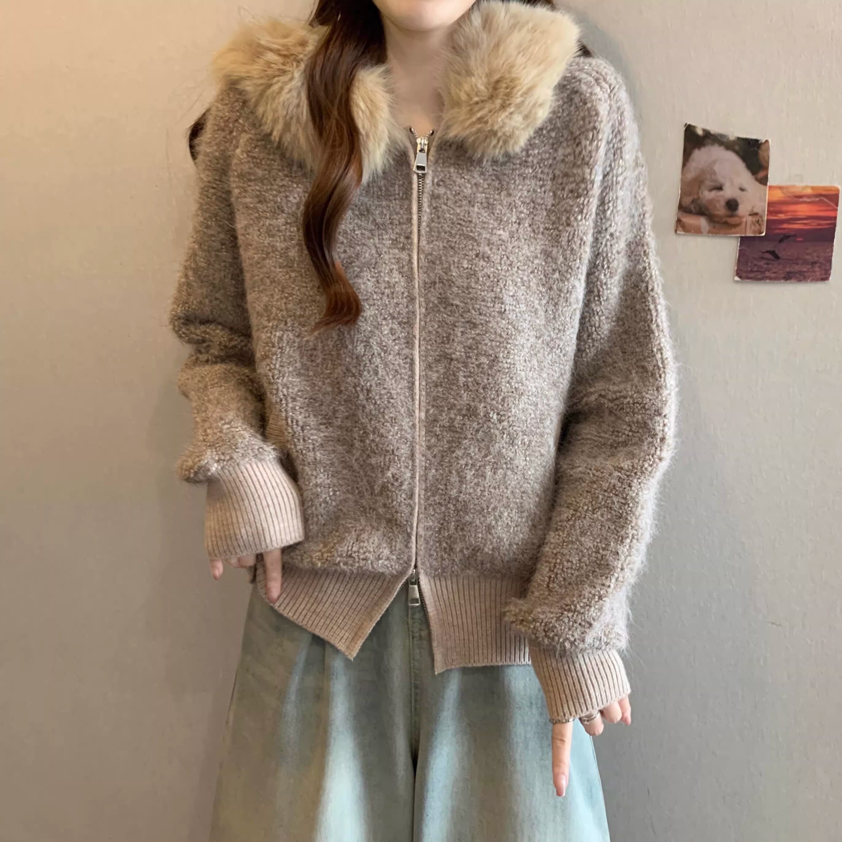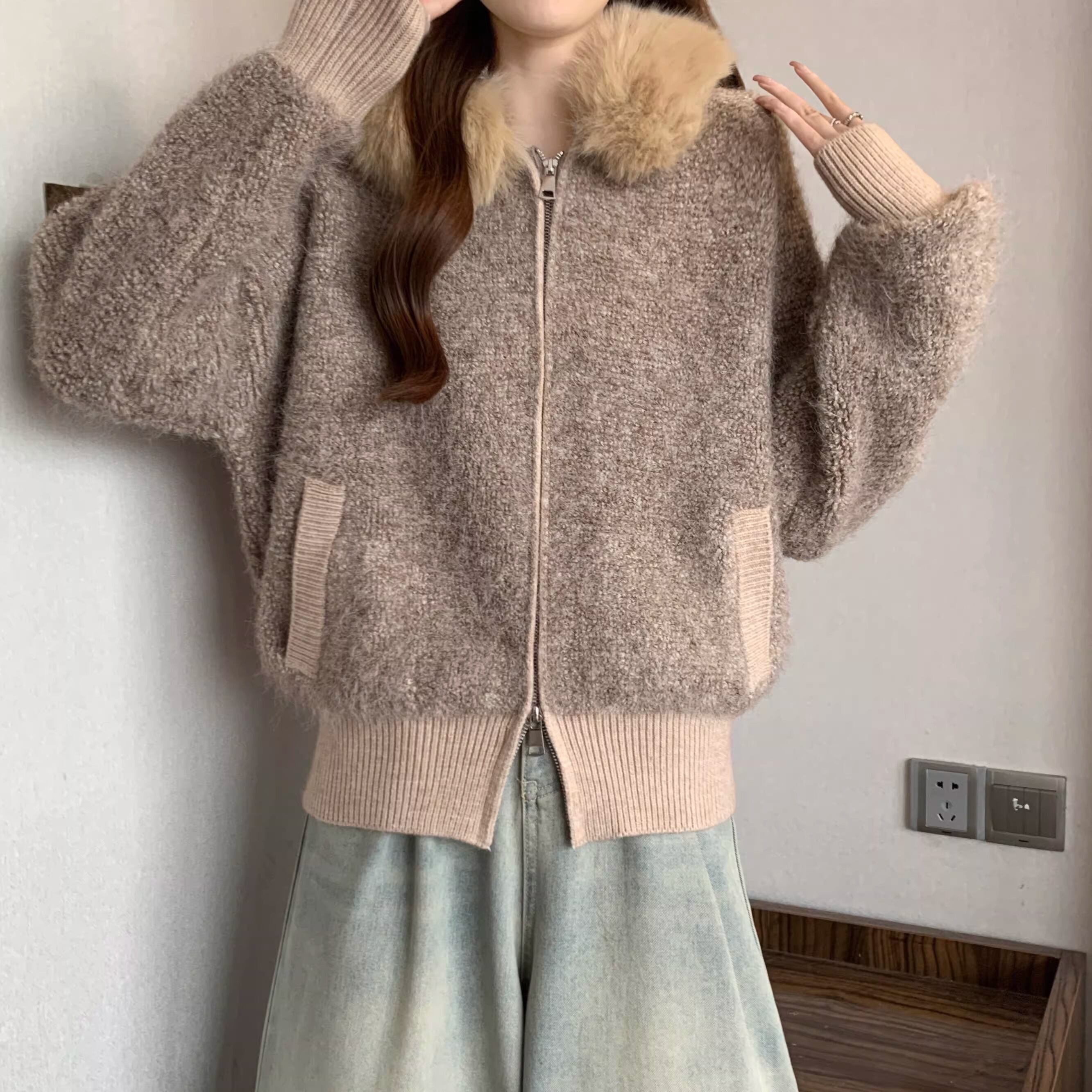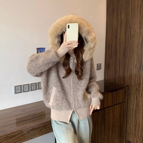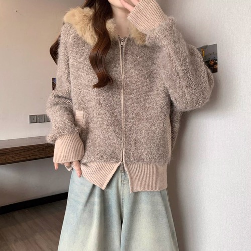 ウールライクファーフーデッドブルゾン ・74176
