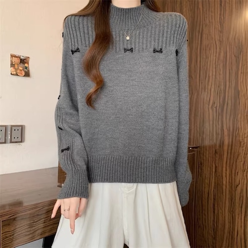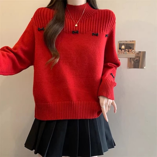 3色/チョーカーネックニットプルオーバー ・74288