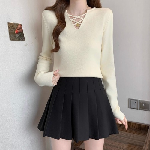 3色/チョーカーネックニットプルオーバー ・74288
