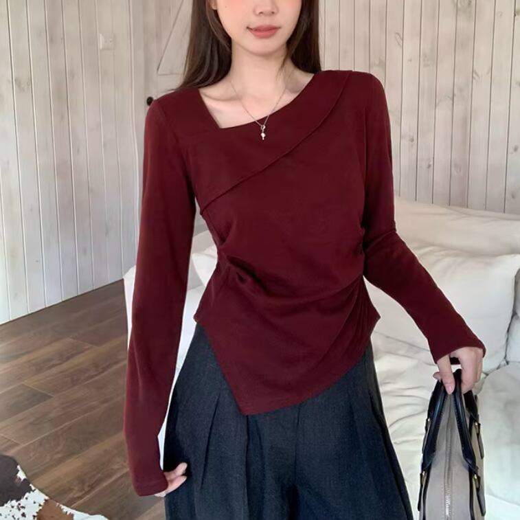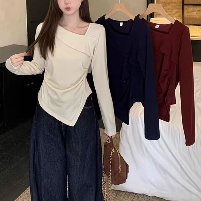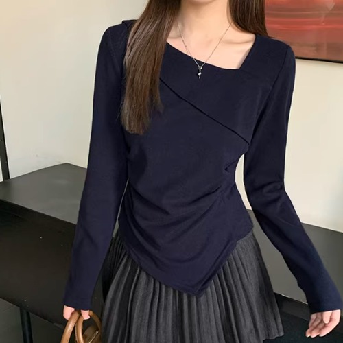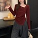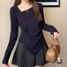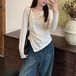 レースカラーアシメボタンドッキングトップス ・71106