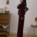 【2点セット】2色/ハイネックトップス+サイドベルトチェックジャンスカ ・72066