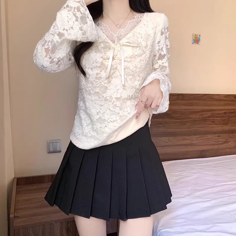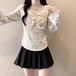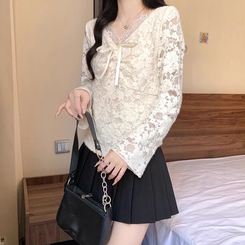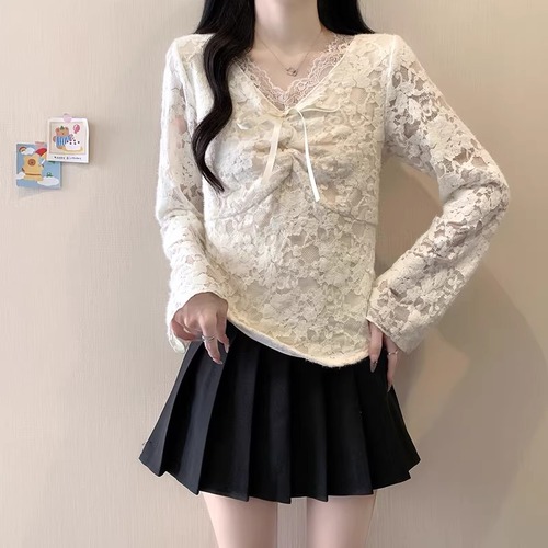 レースカラーアシメボタンドッキングトップス ・71106