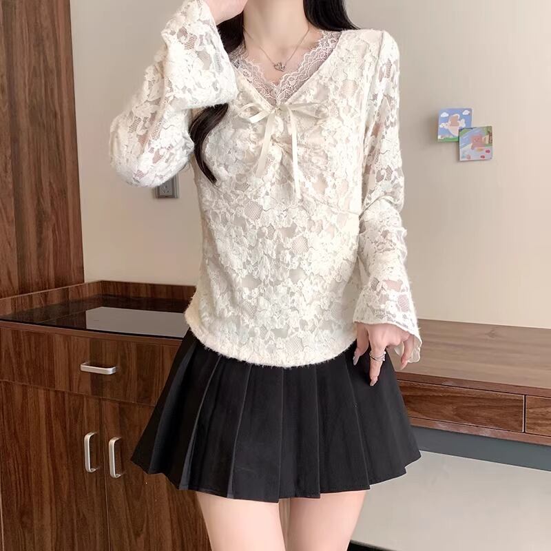 4色/ボウタイVネックカットソー ・74296