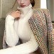 【2点セット】2色/ハイネックトップス+サイドベルトチェックジャンスカ ・72066