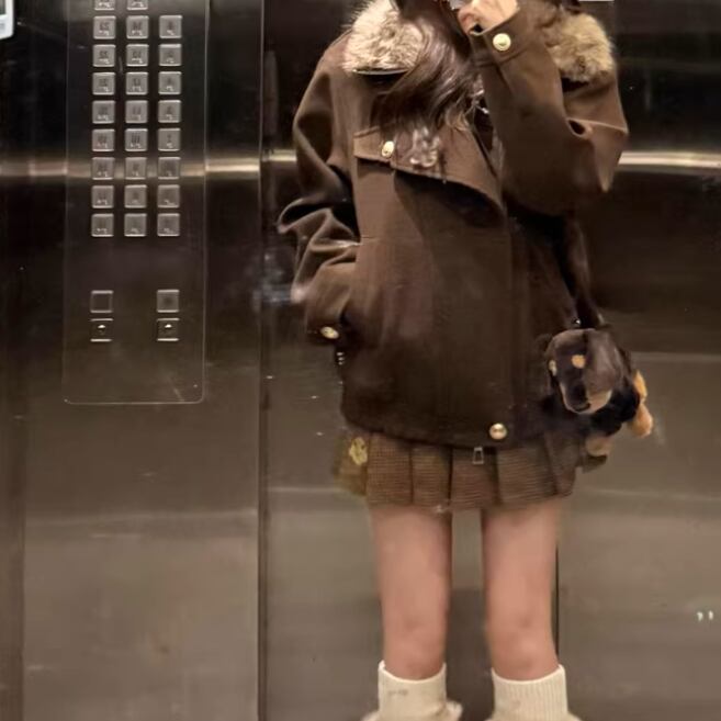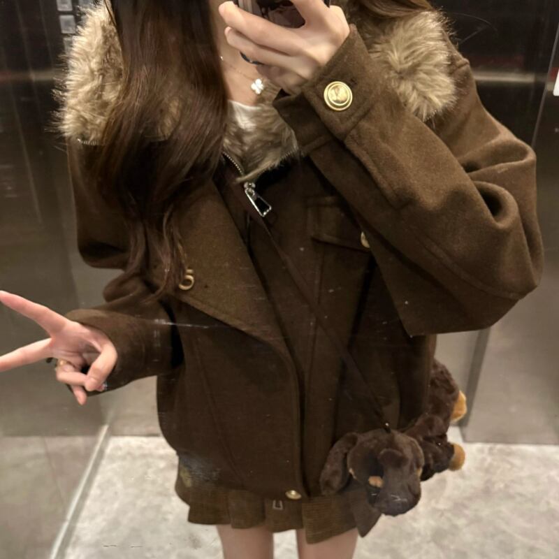 ウールライクファーフーデッドブルゾン ・74176