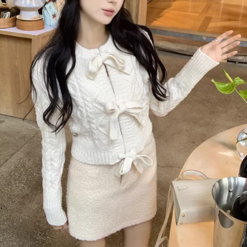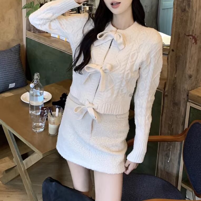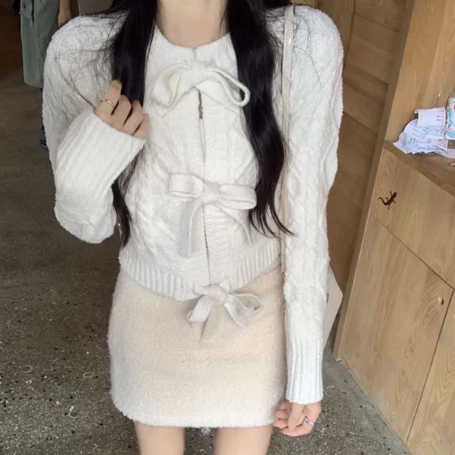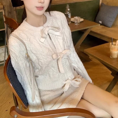 3色/リボンハニカムニットカーデ ・20306