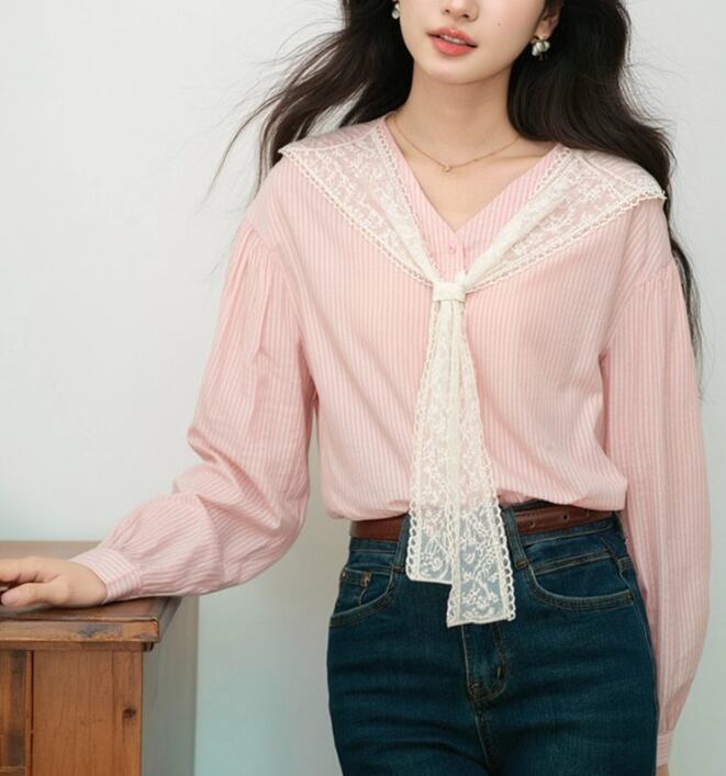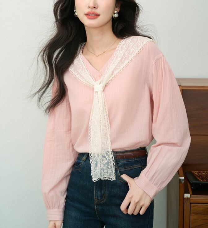 タイデザインパフスリーブブラウス ・74477