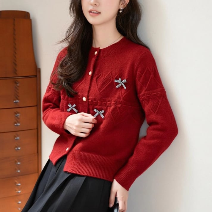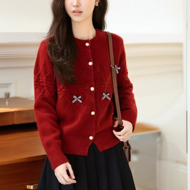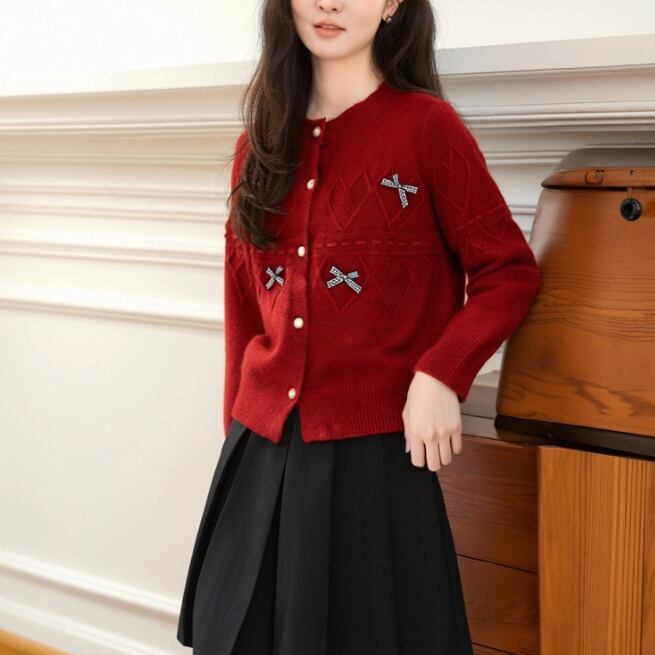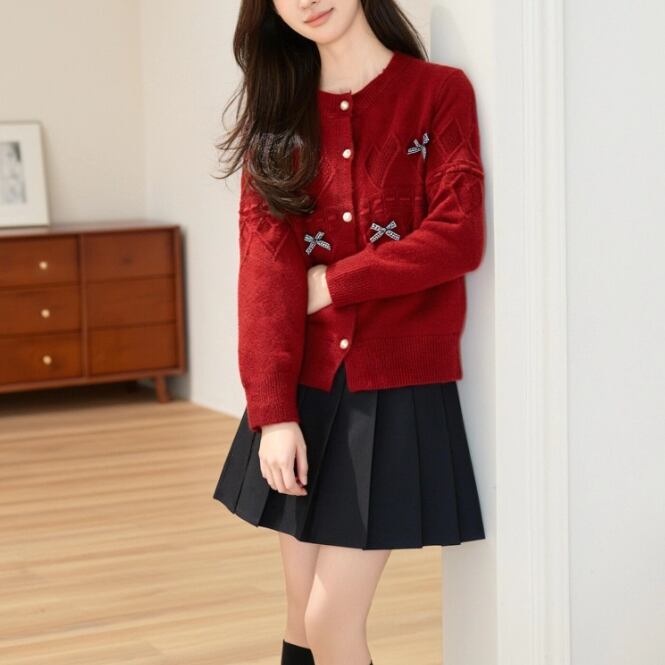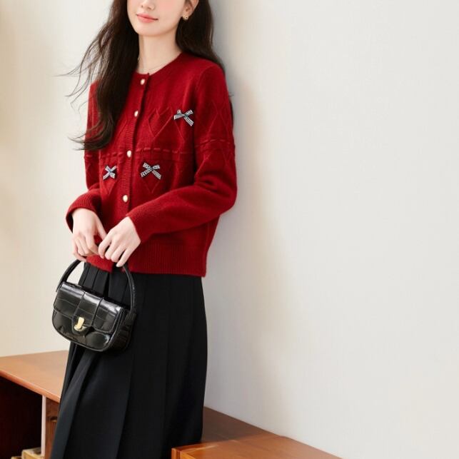 3色/リボンハニカムニットカーデ ・20306