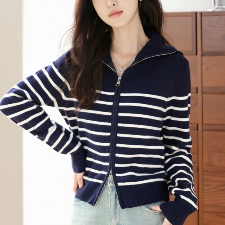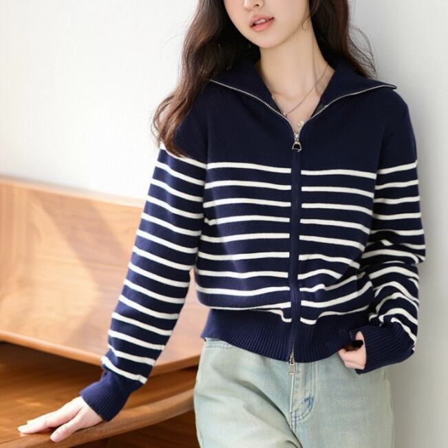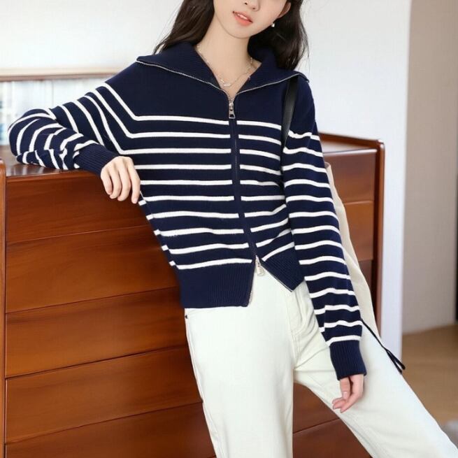 2色/ノルディック柄ポロカラーニットカーデ ・72764