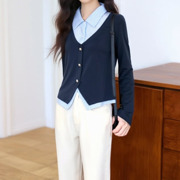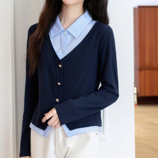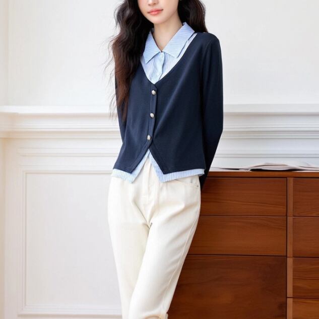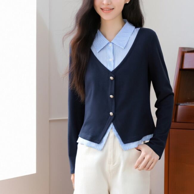 レースカラーアシメボタンドッキングトップス ・71106