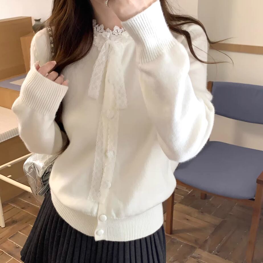 3色/リボンハニカムニットカーデ ・20306