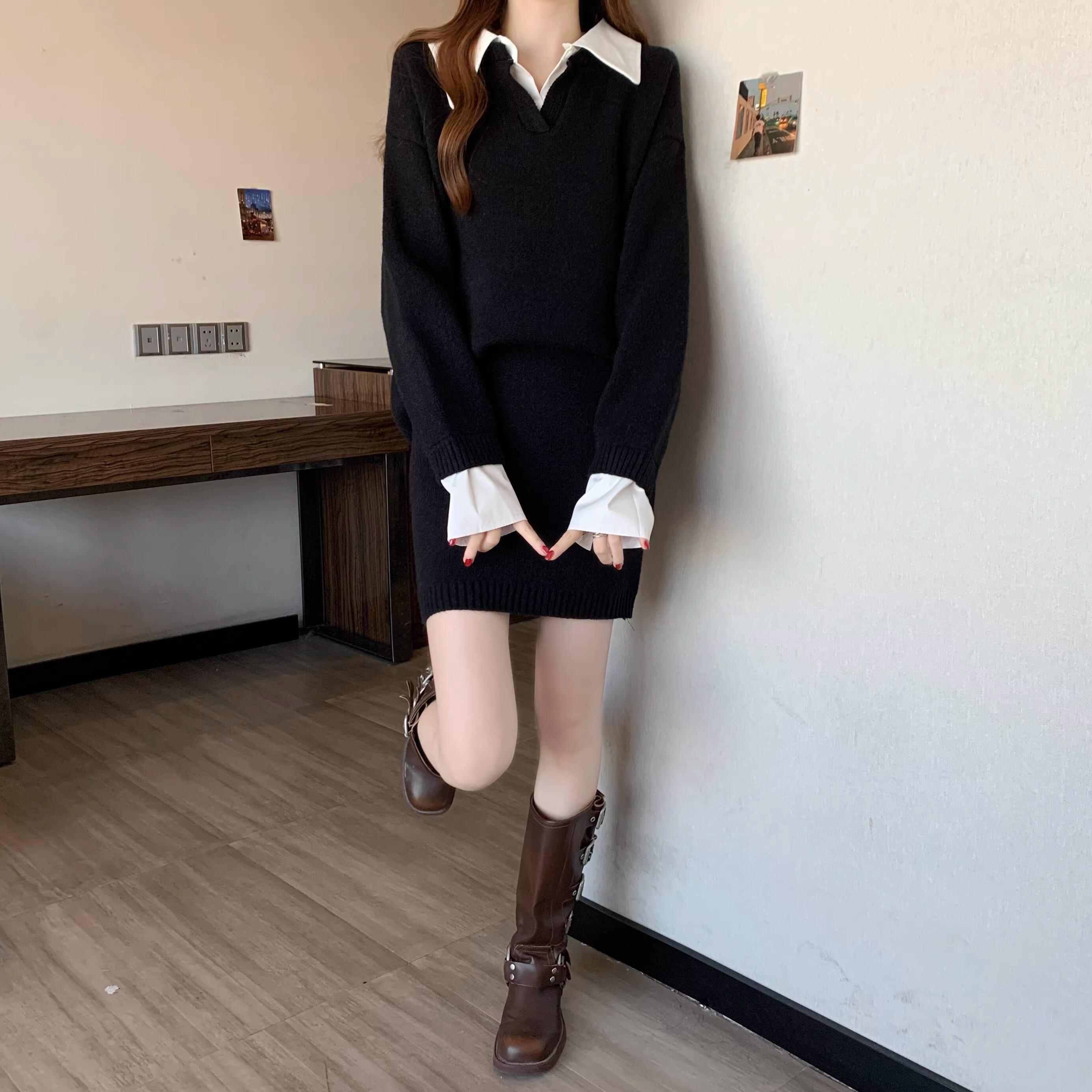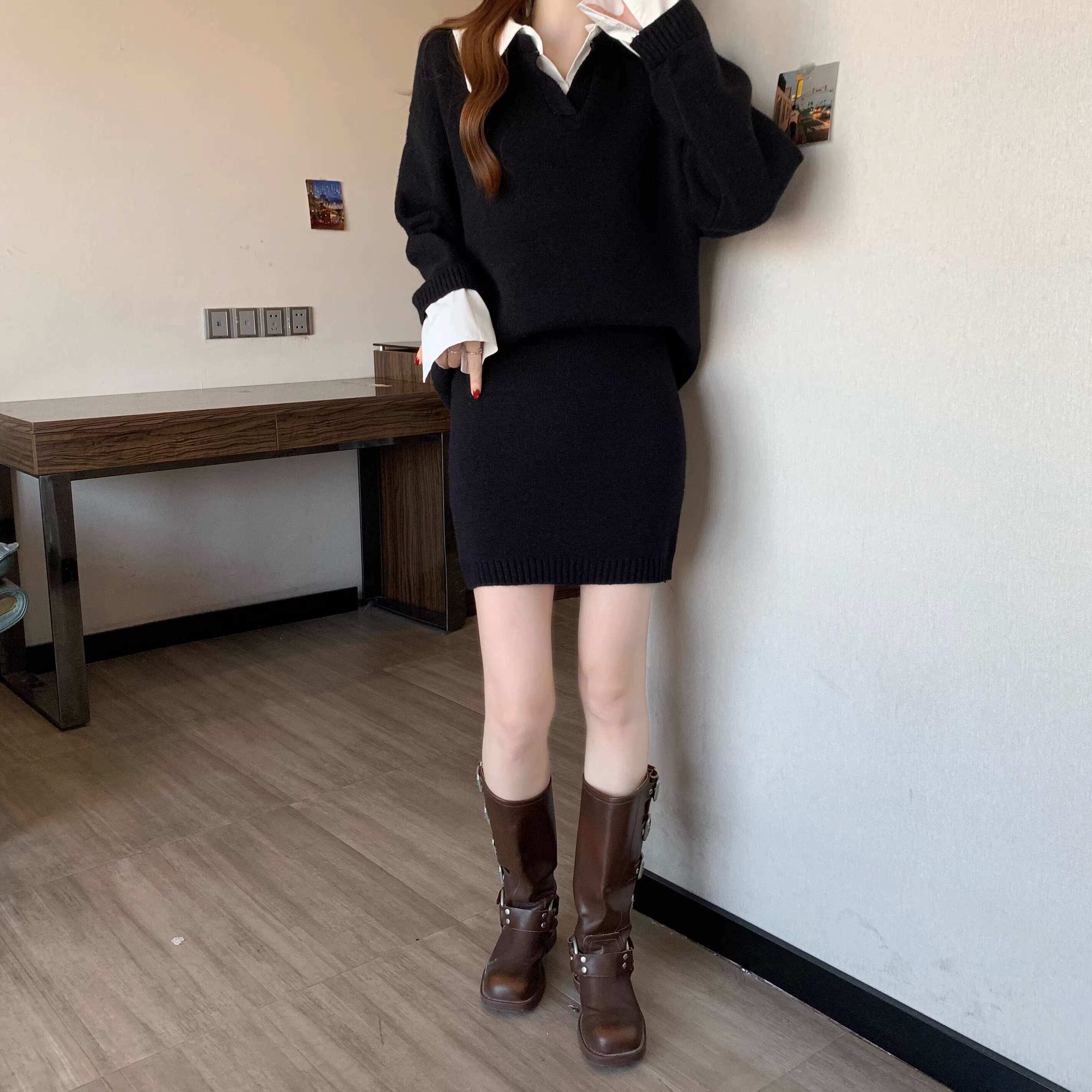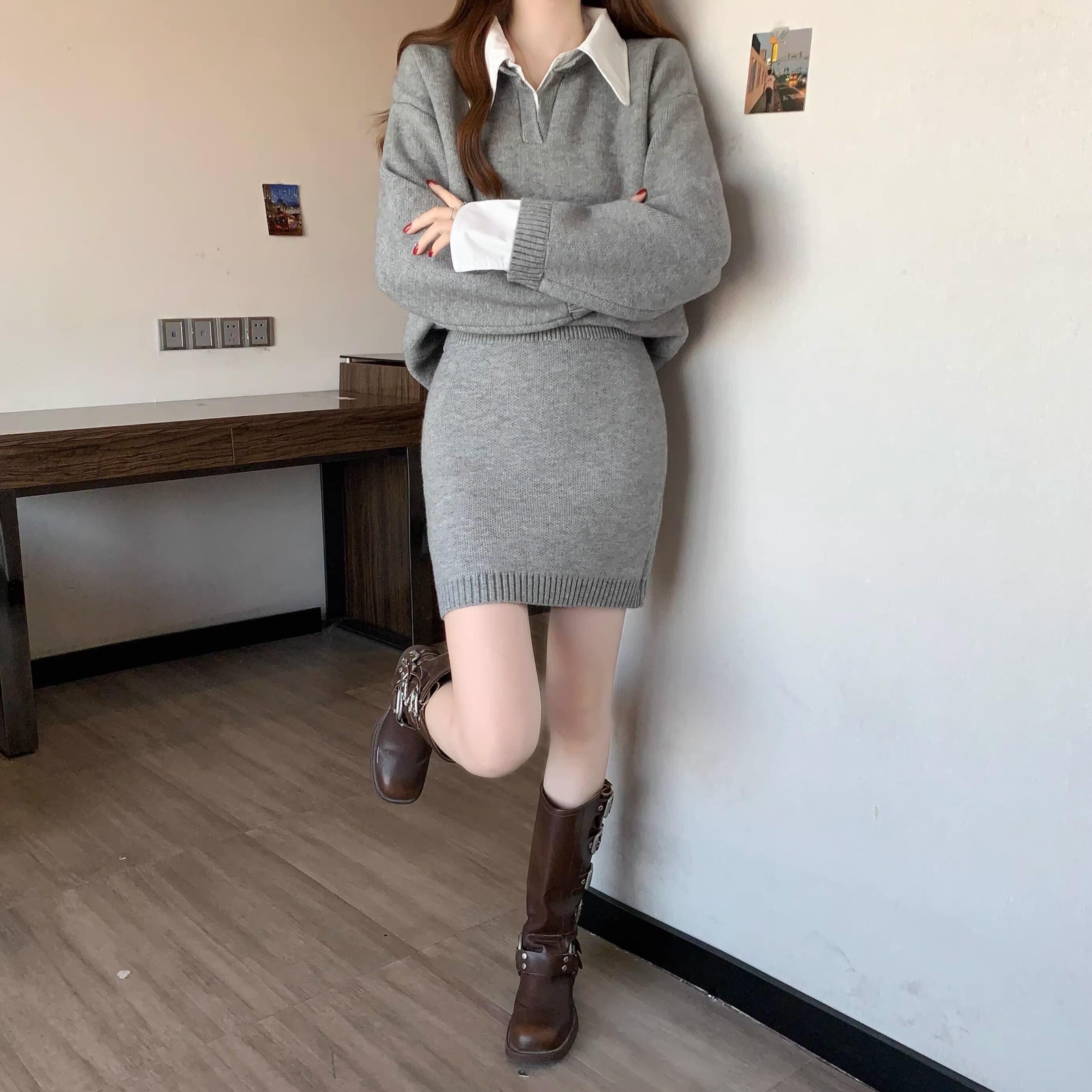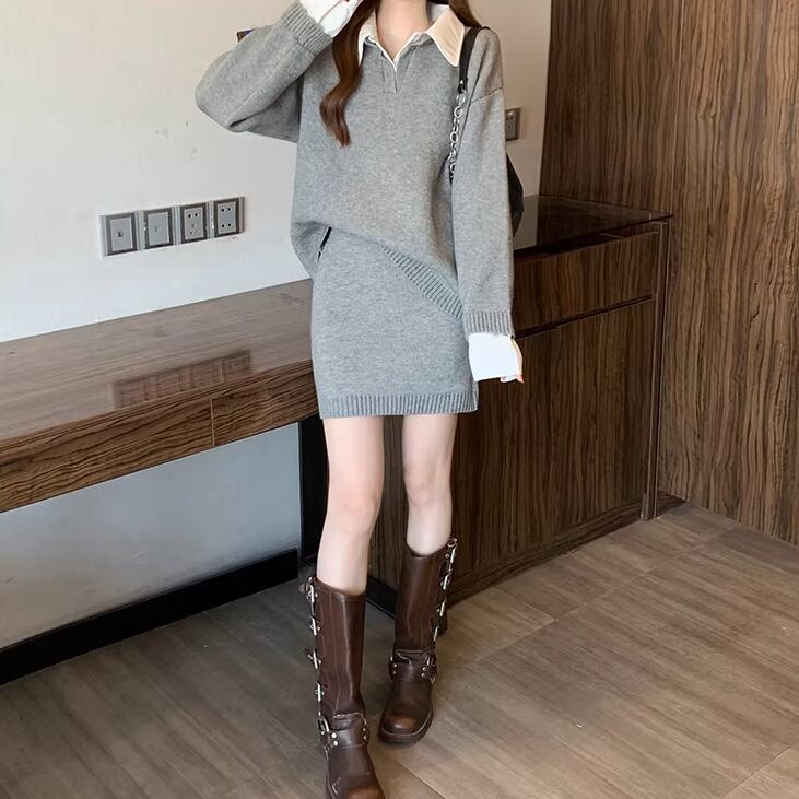 ▽Instagram「新作情報配信中」 フォローお願いいたします。 https://www.instagram.com/sucrier_closet/ ▼カラー グレー(画像2枚目) ブラック(画像3枚目) ▼サイズ [ Mサイズ ] トップス:着丈59cm バスト104cm スカート:着丈41cm ウエスト63cm [ Lサイズ ] トップス:着丈60cm バスト108cm スカート:着丈42cm ウエスト67cm [ XLサイズ ] トップス:着丈61cm バスト112cm スカート:着丈43cm ウエスト71cm [ 2XLサイズ ] トップス:着丈62cm バスト116cm スカート:着丈44cm ウエスト75cm [ 3XLサイズ ] トップス:着丈63cm バスト120cm スカート:着丈45cm ウエスト79cm ※1-3cm程度の誤差がある場合がございます。予めご了承ください。 ▼シーズン 秋冬 ▼同じカテゴリの商品はこちら https://www.sucrier.jp/categories/1737171 ▽お支払い方法 ・クレジットカード決済 ・キャリア決済 (docomo/au/Softbank/Y!mobile) ・後払い決済 (商品お届け後コンビニ払いなど) ▽注意点 ※こちらの商品は決済から10日-3週間前後でのお届けとなります。 ※配送日時指定等に関しては、ご指定できないことご了承くださいませ。 ※できる限り早くお届けできるように手配させて頂きます。 ※検品はしておりますが、もし届いた商品に不備がありましたら、誠実に対応させていただきます。 商品ID:SC074422