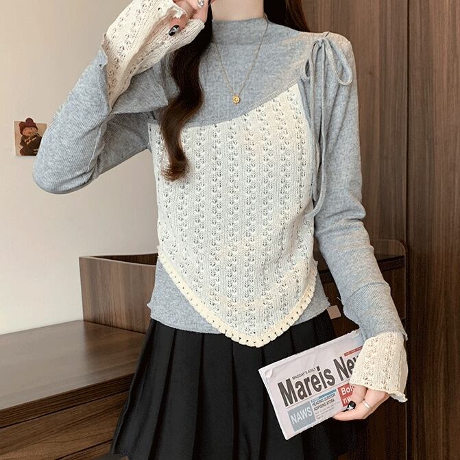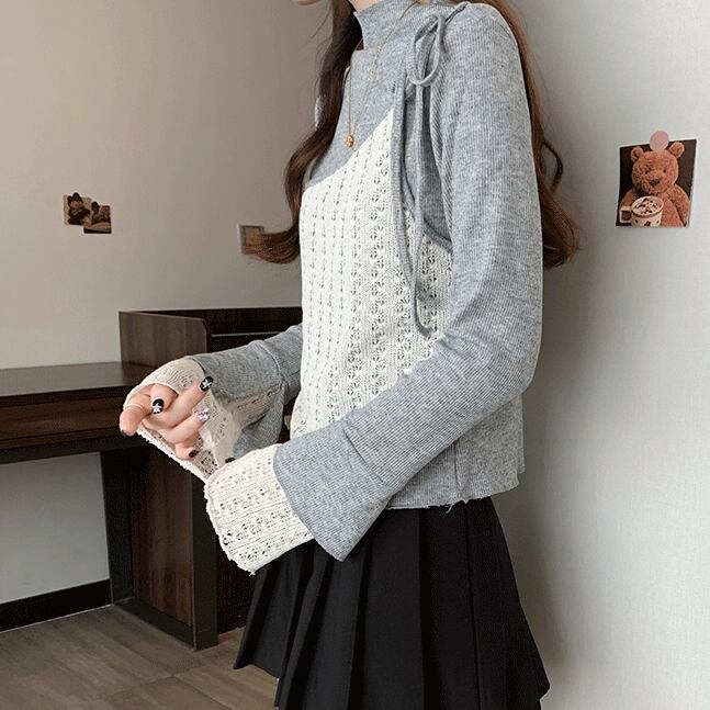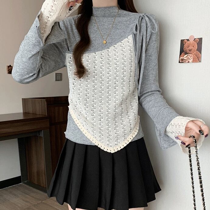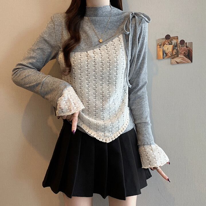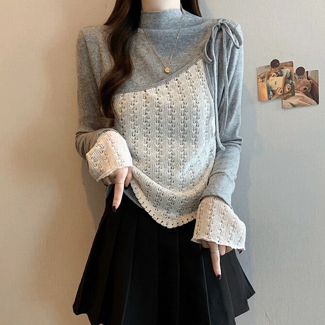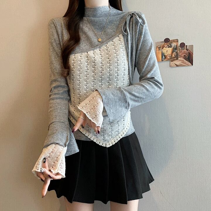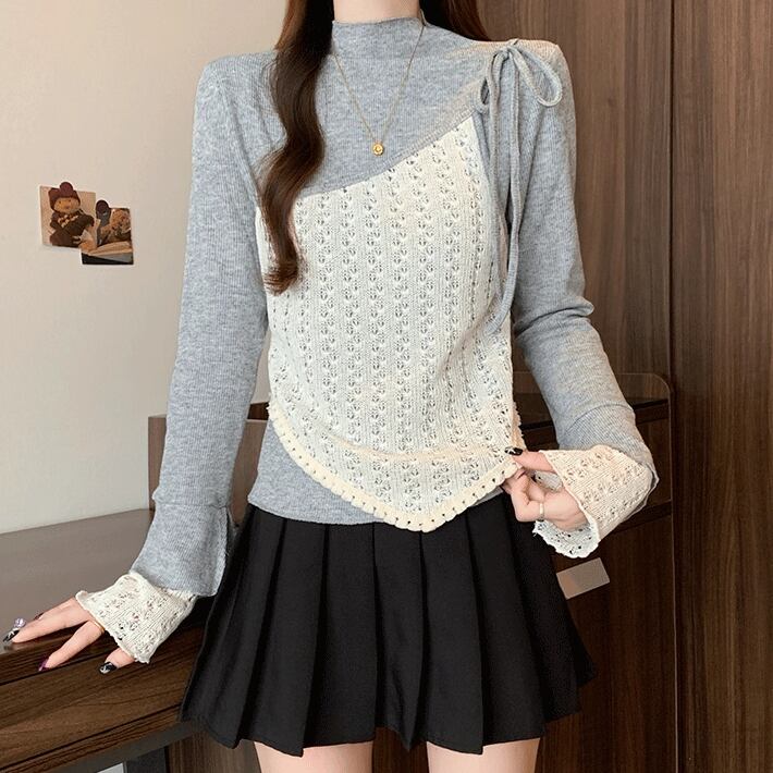 レースカラーアシメボタンドッキングトップス ・71106