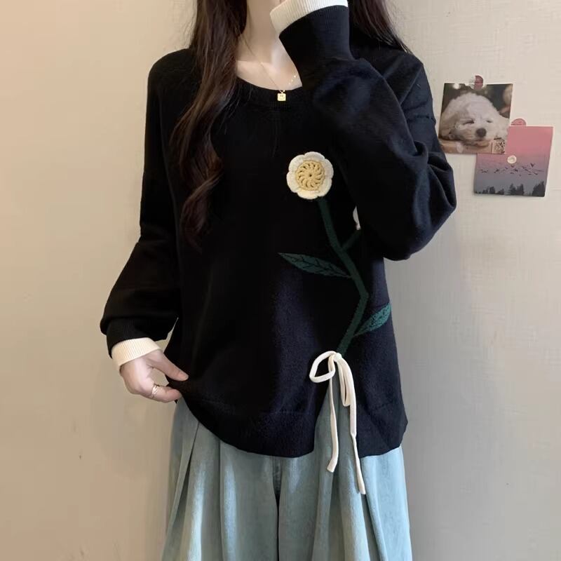 【2点セット】2色/ラウンドネックコンパクトリブニットトップス+スリムマフラー ・74475