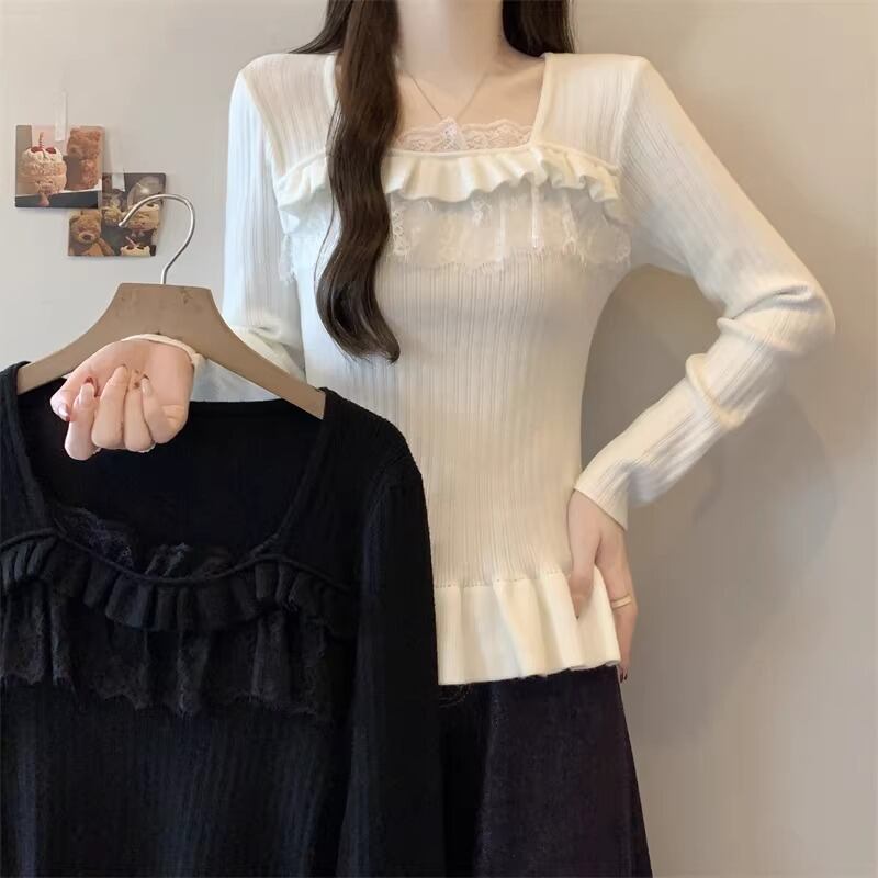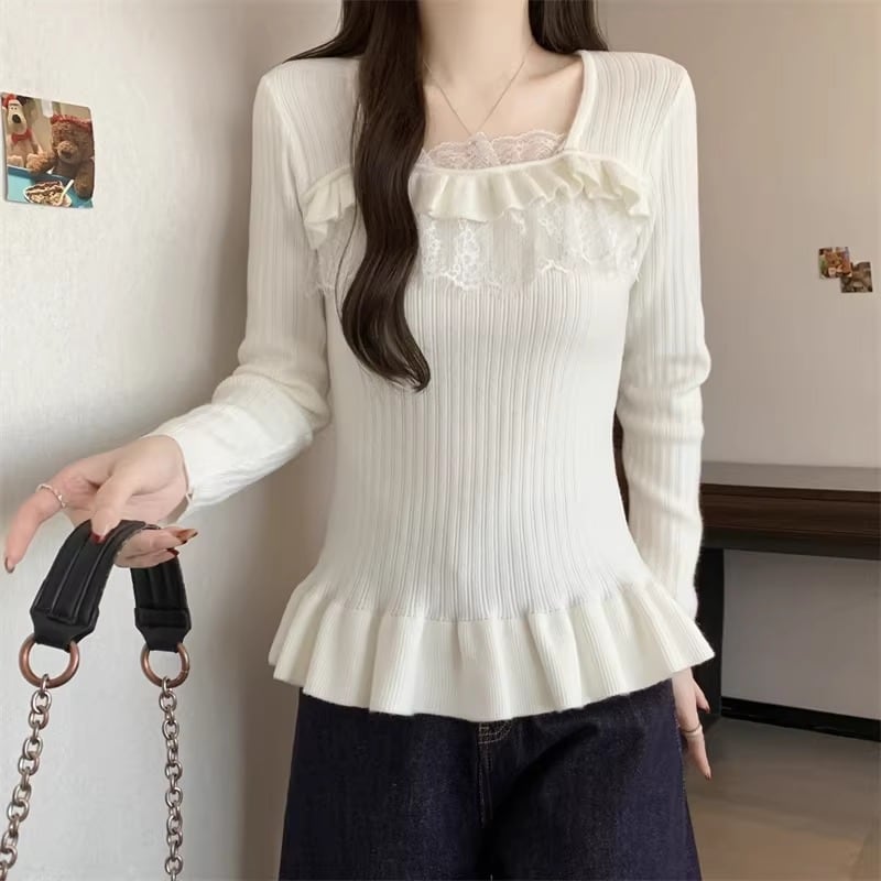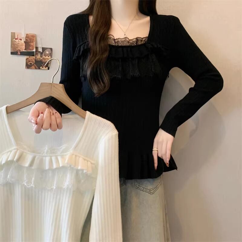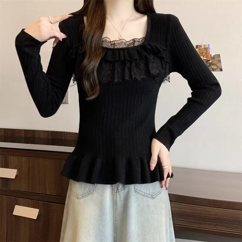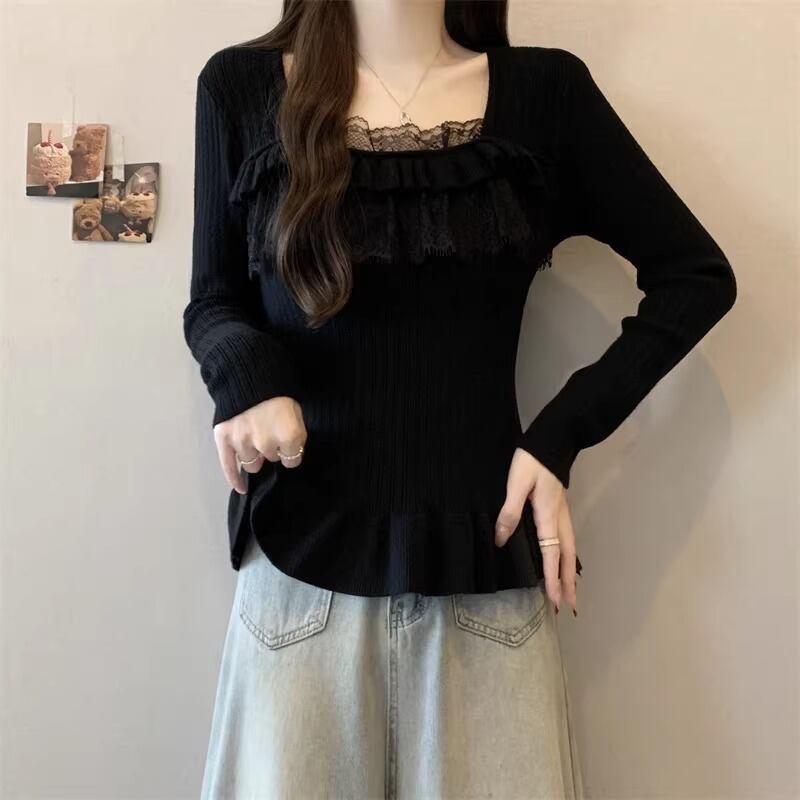 レースカラーアシメボタンドッキングトップス ・71106