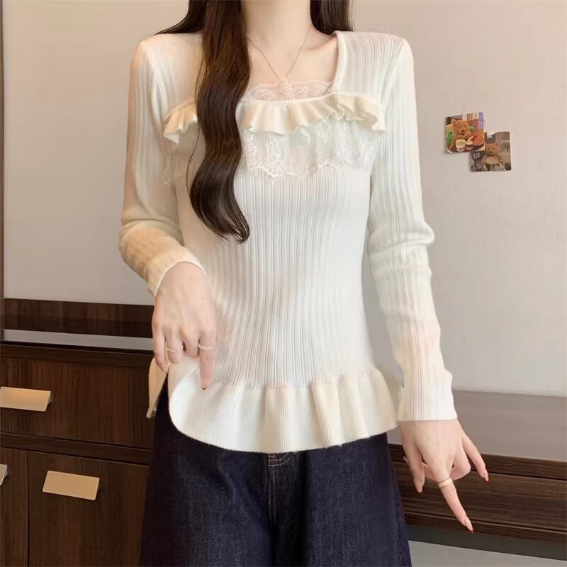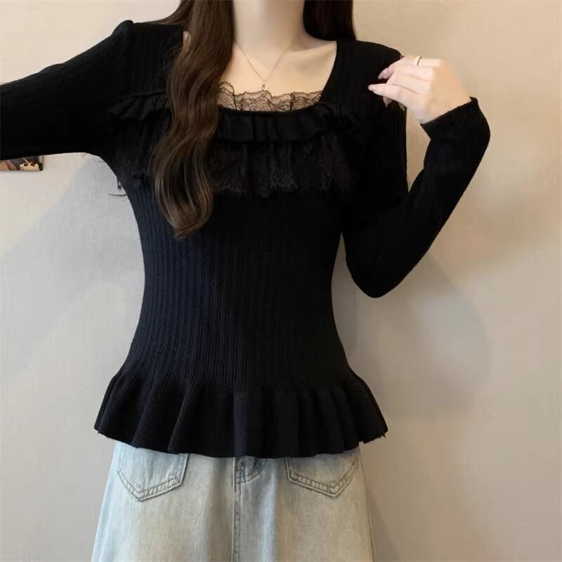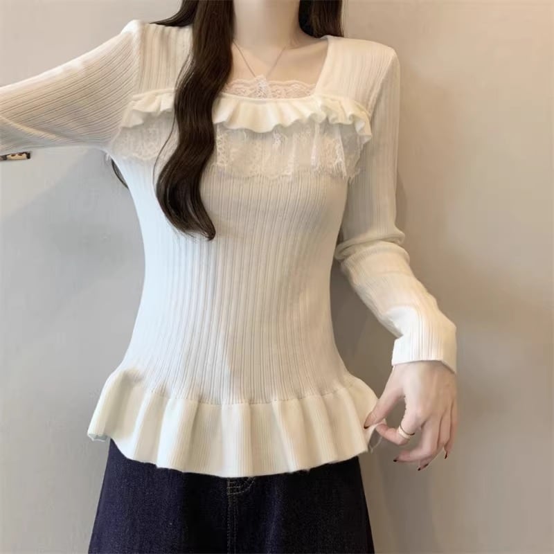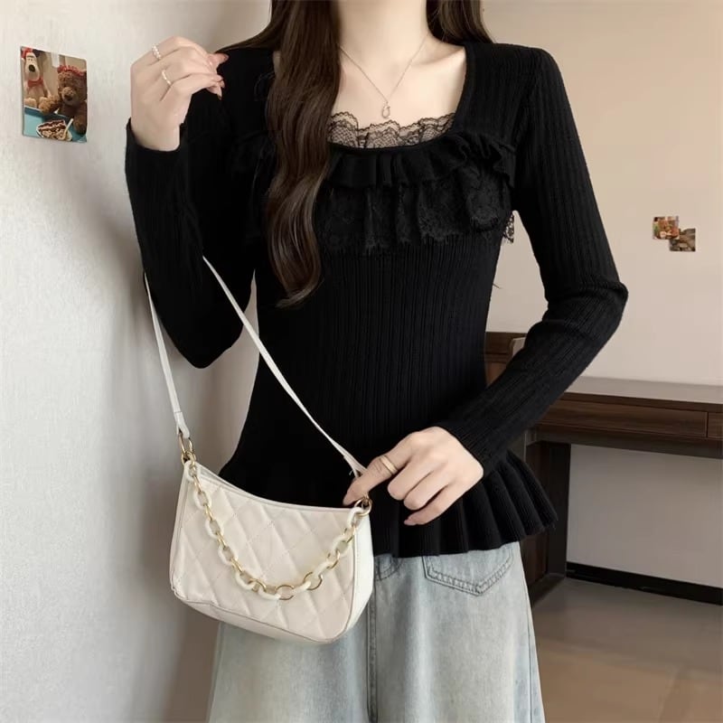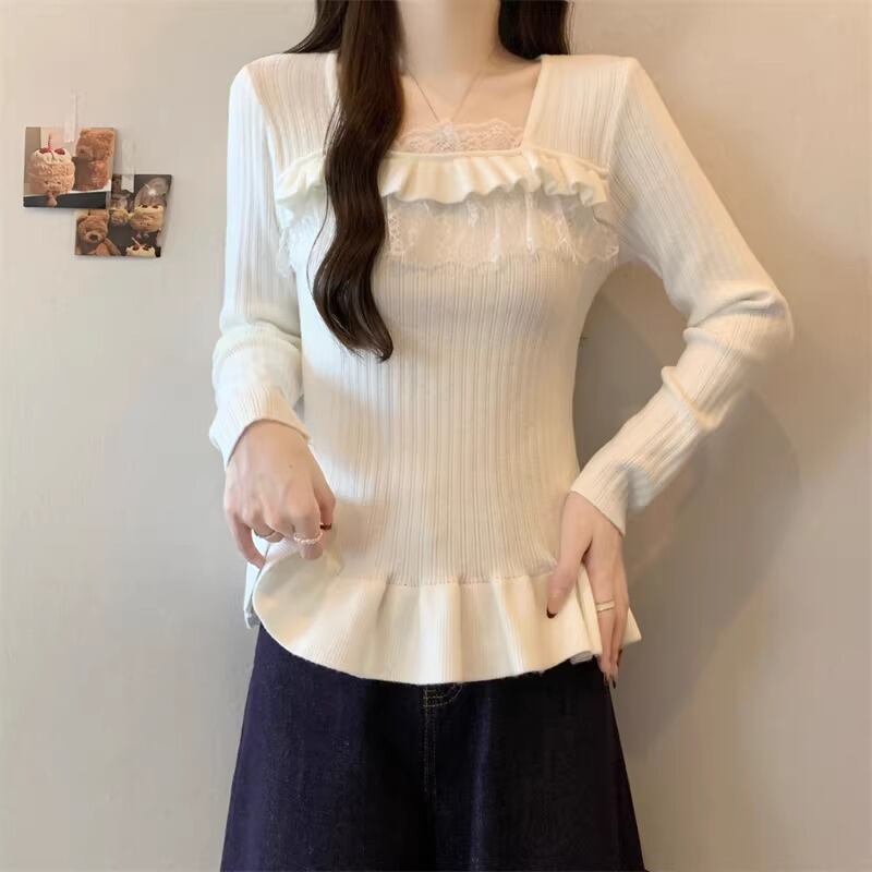 レースカラーアシメボタンドッキングトップス ・71106