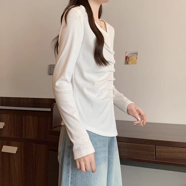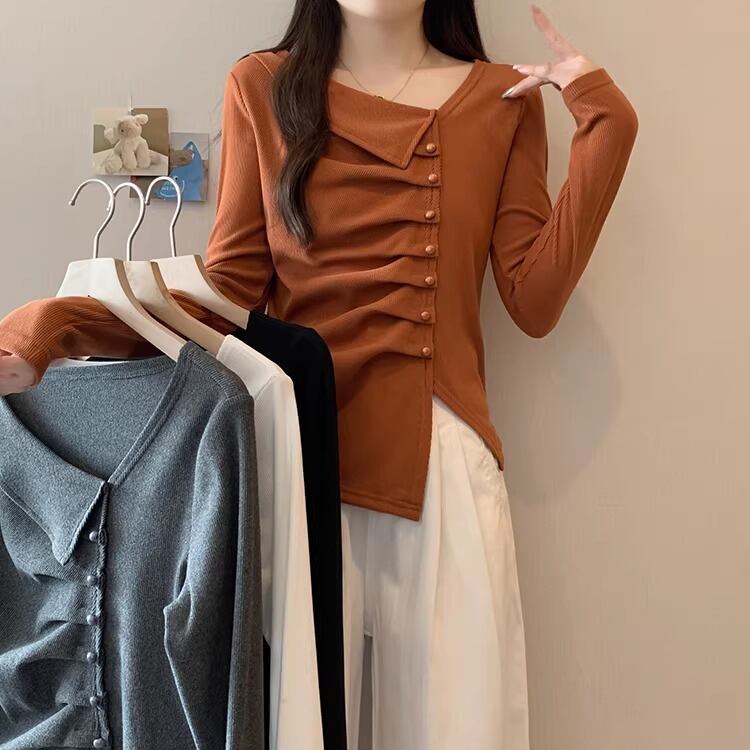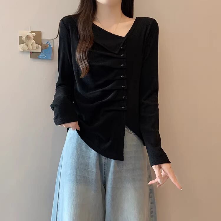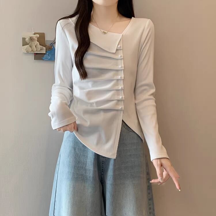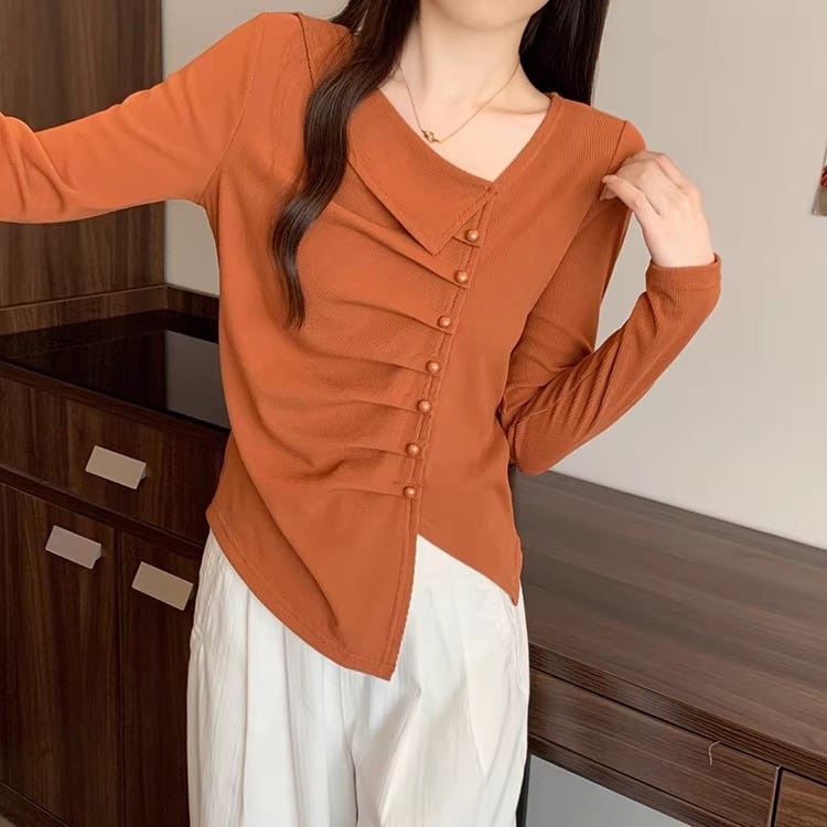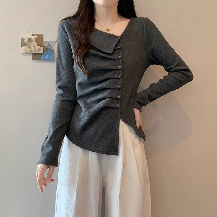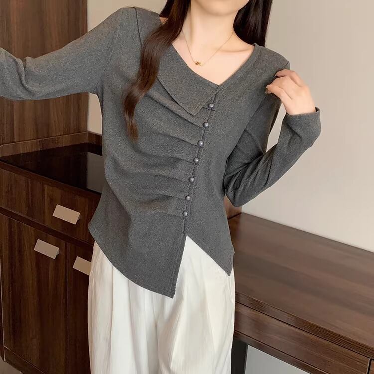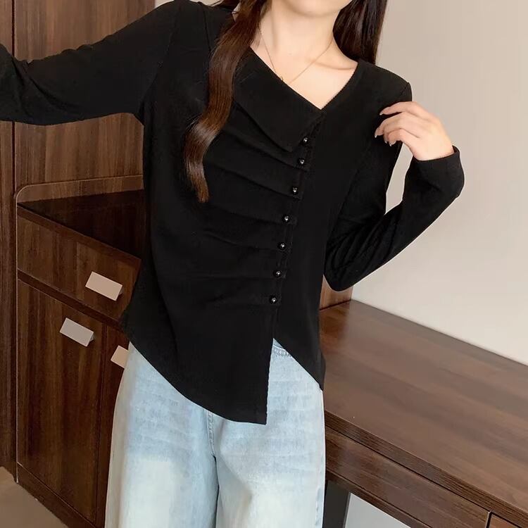 レースカラーアシメボタンドッキングトップス ・71106