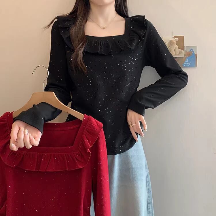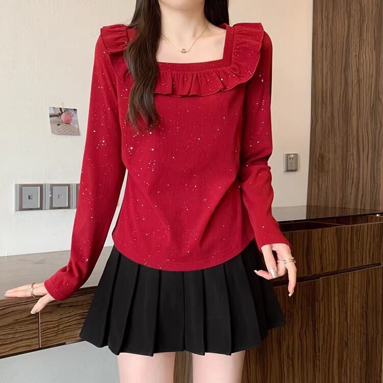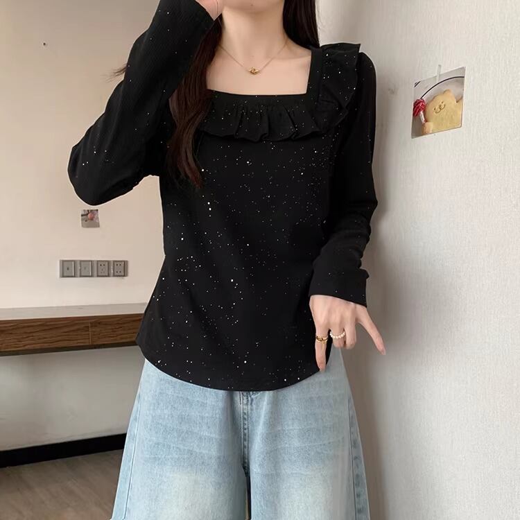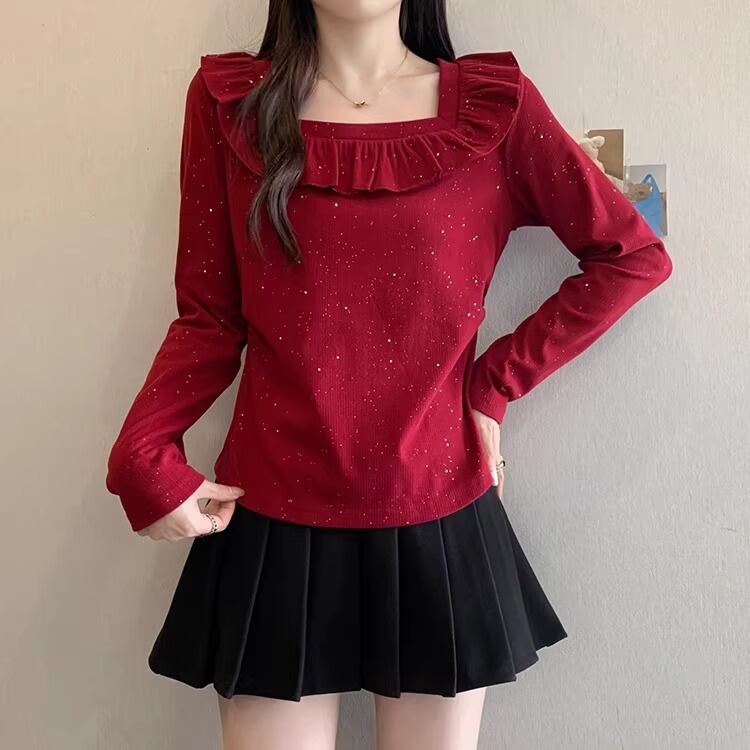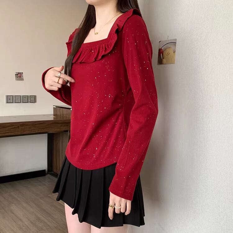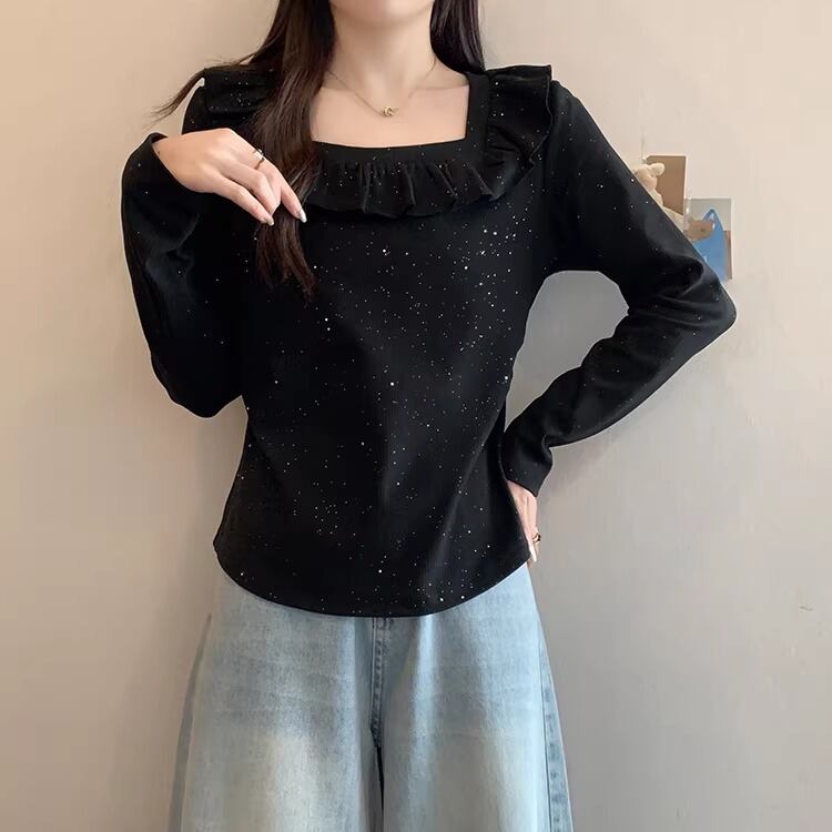 レースカラーアシメボタンドッキングトップス ・71106