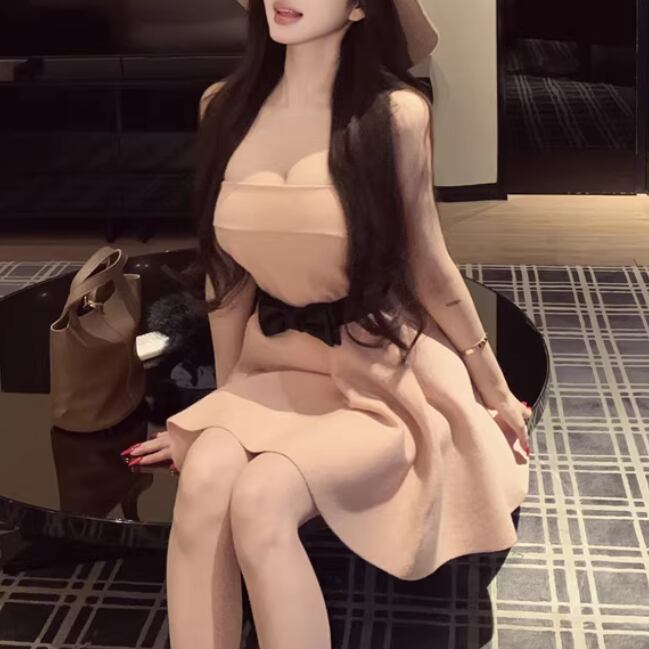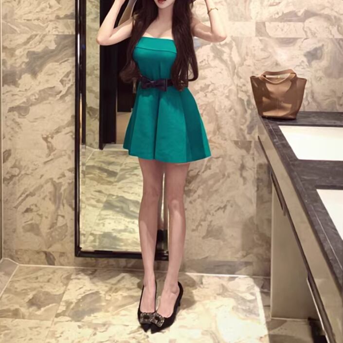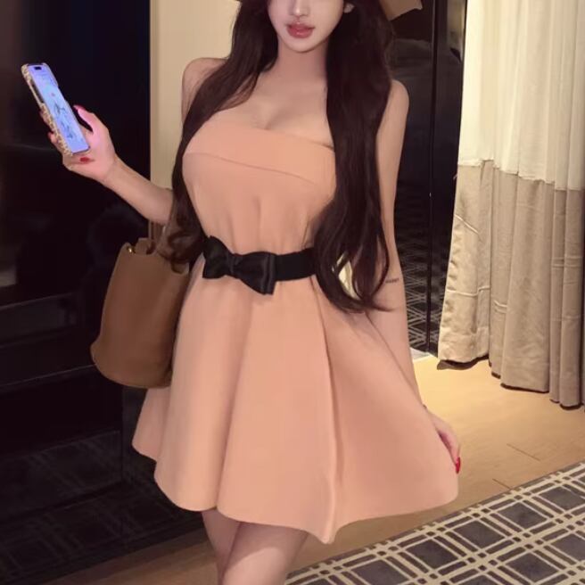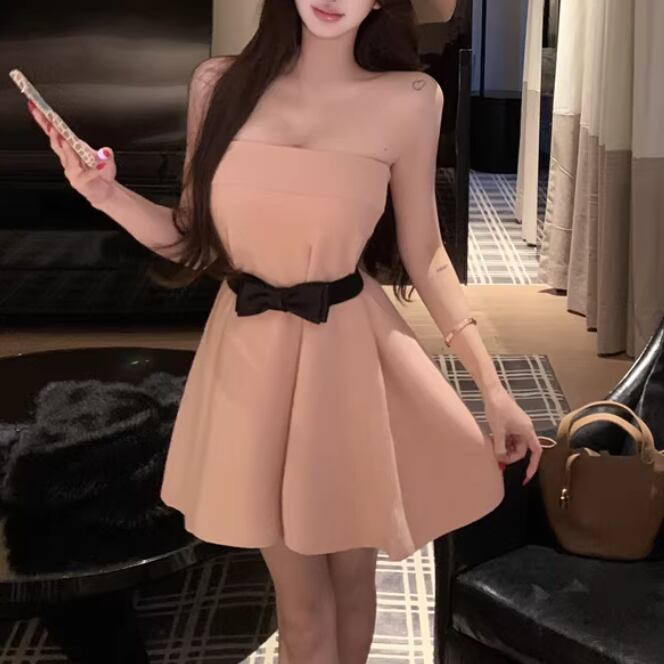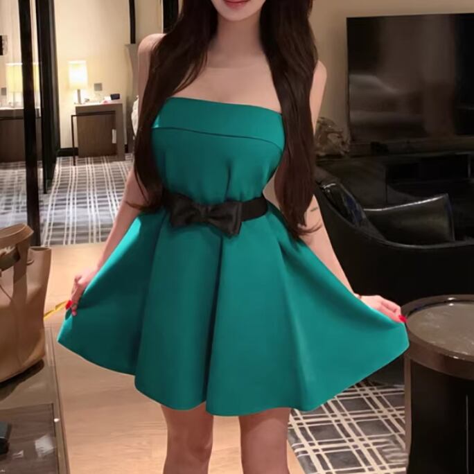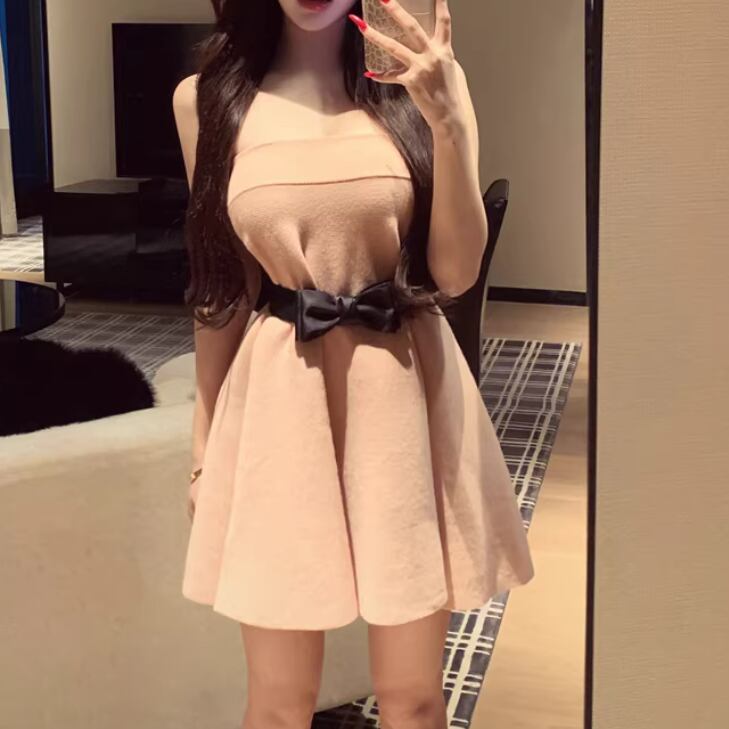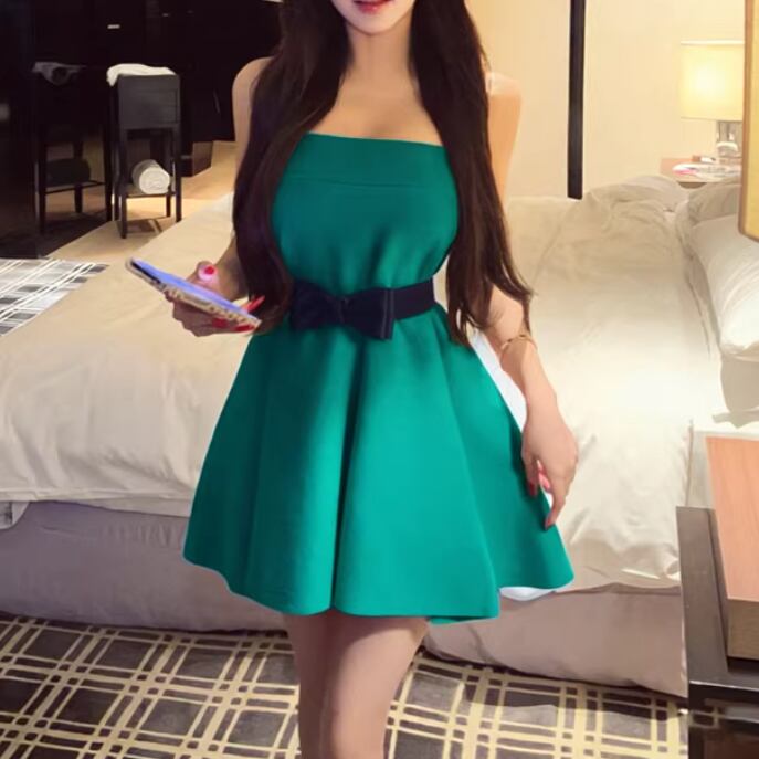 2色/切替ストライプリボンプリーツワンピ ・63127