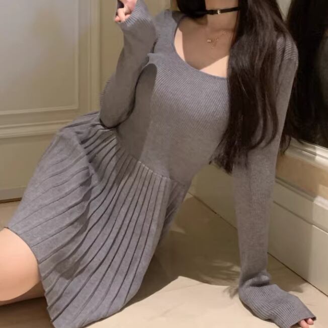 2色/切替ストライプリボンプリーツワンピ ・63127