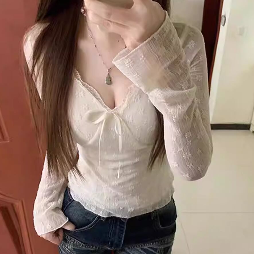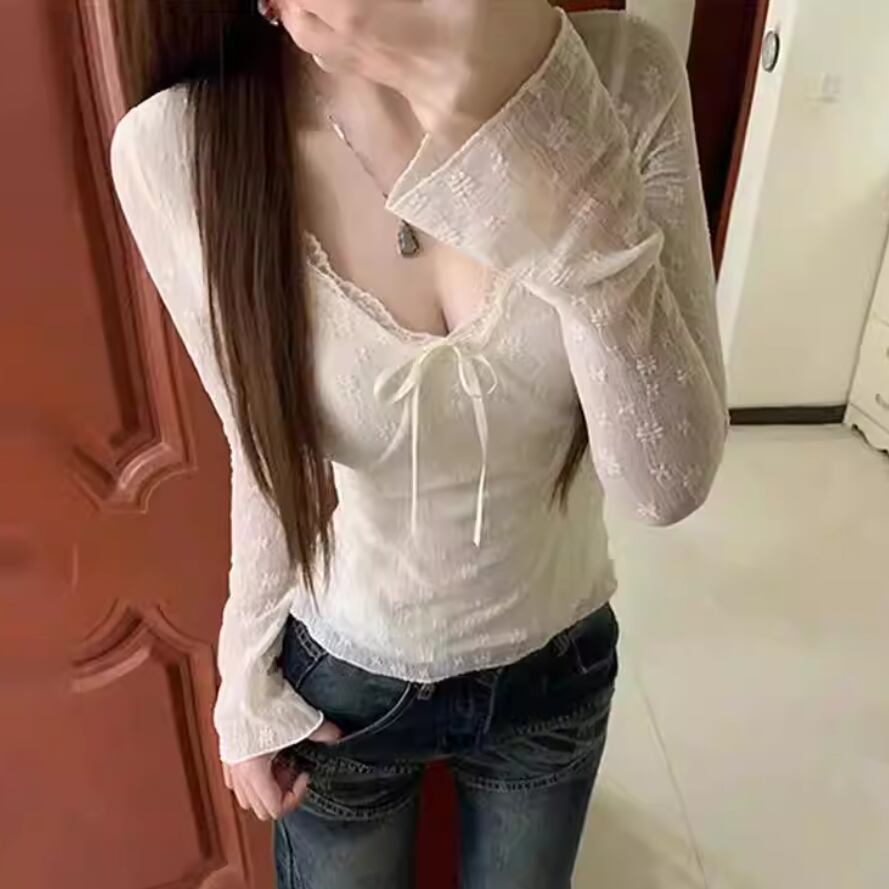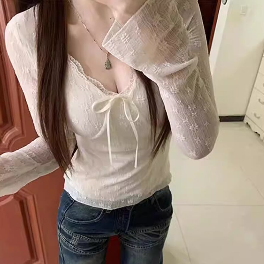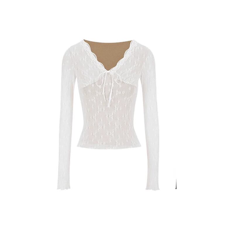 レースカラーアシメボタンドッキングトップス ・71106