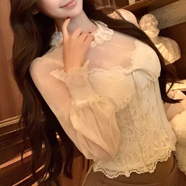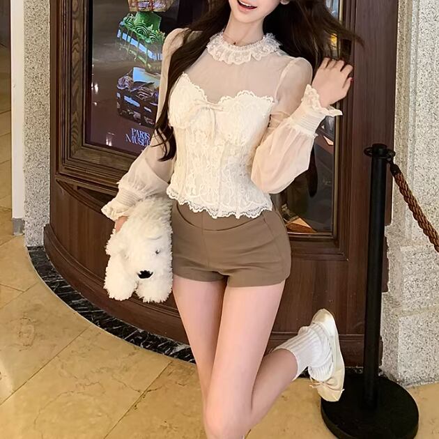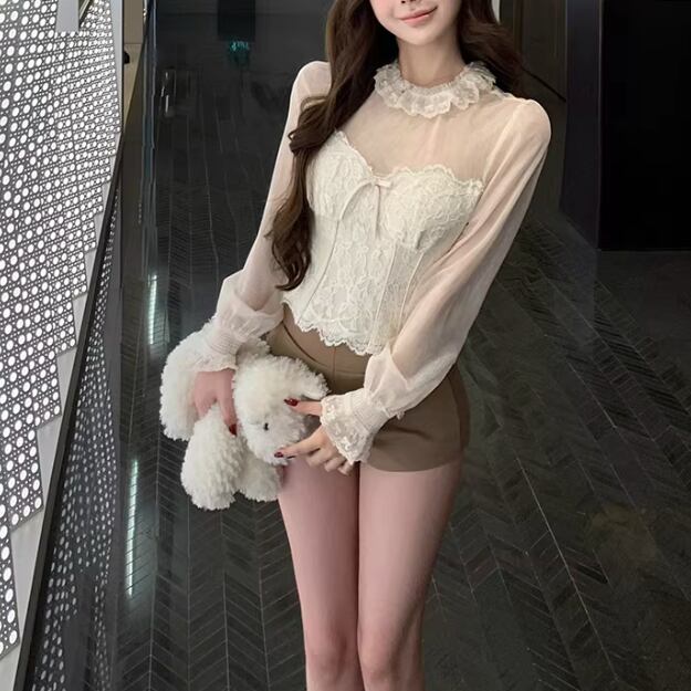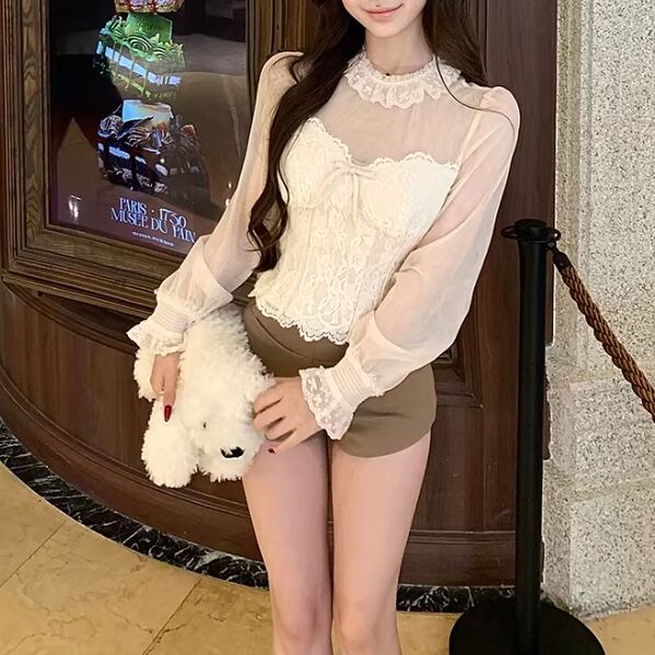レースショールストライプVネックブラウス ・74488