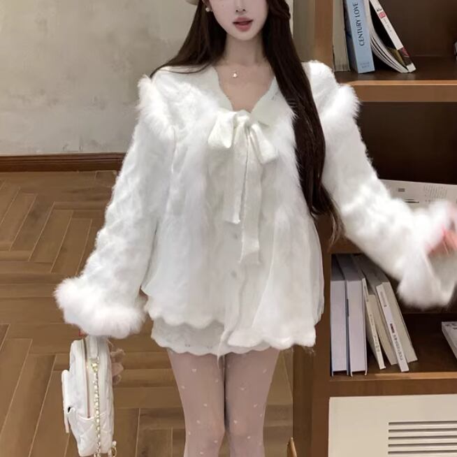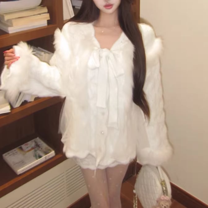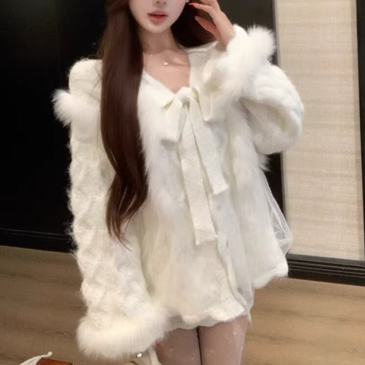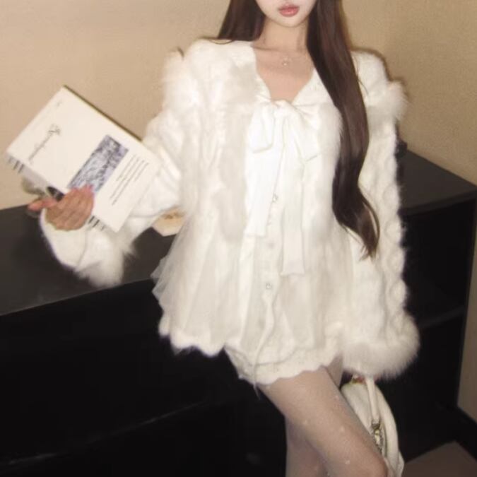 【2点セット】ショートジャケット+ファートリムティアードリボンキャミワンピ ・63097