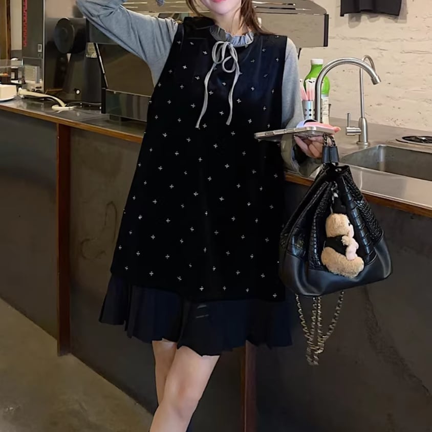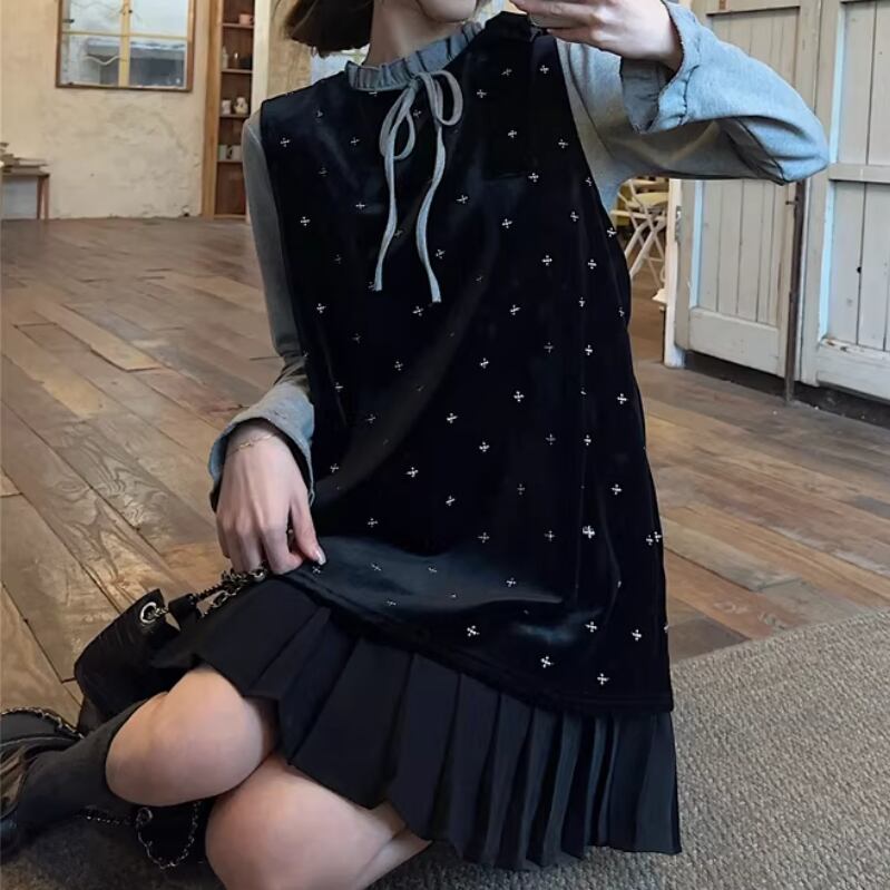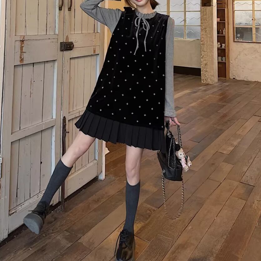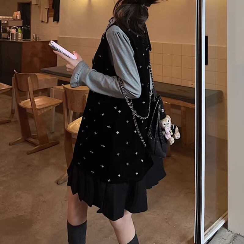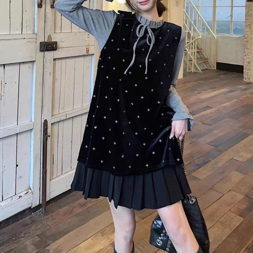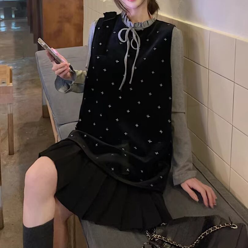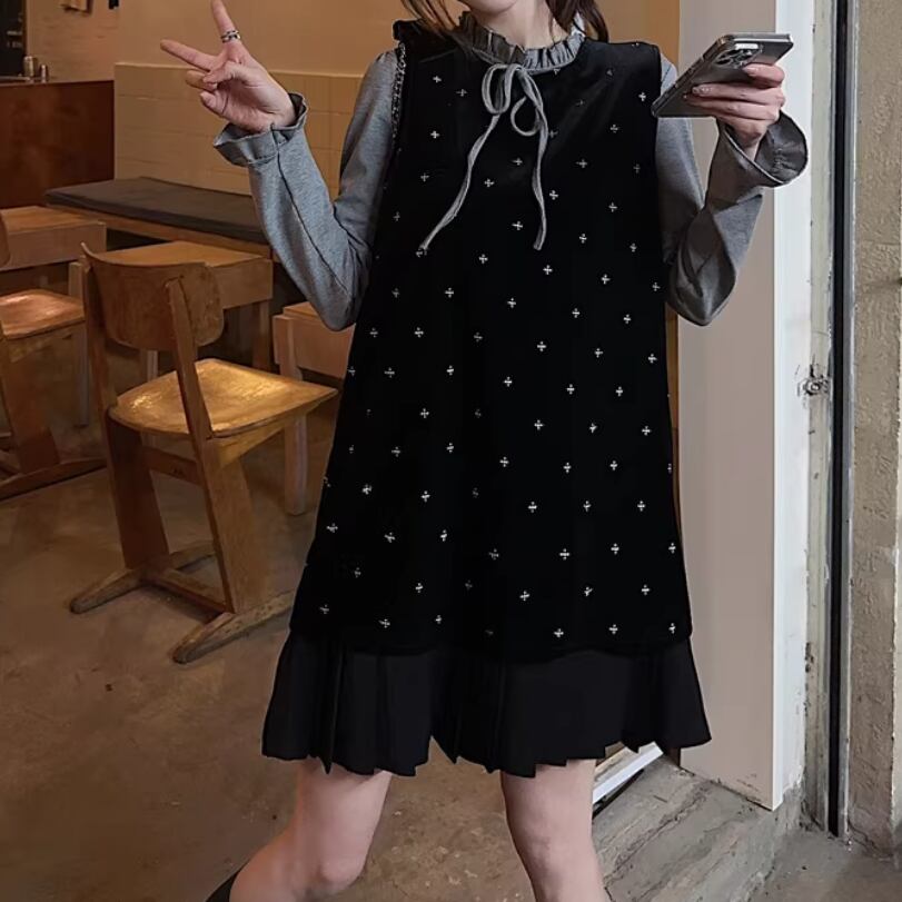 【2点セット】レイヤード風ツイードジャケット+プリーツスカート ・65693