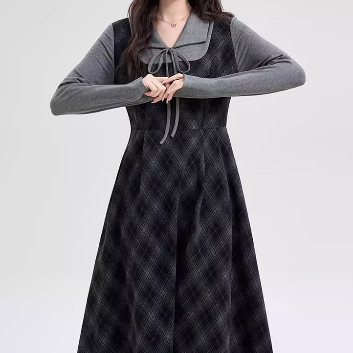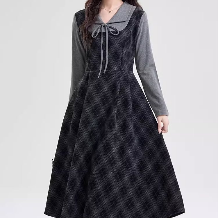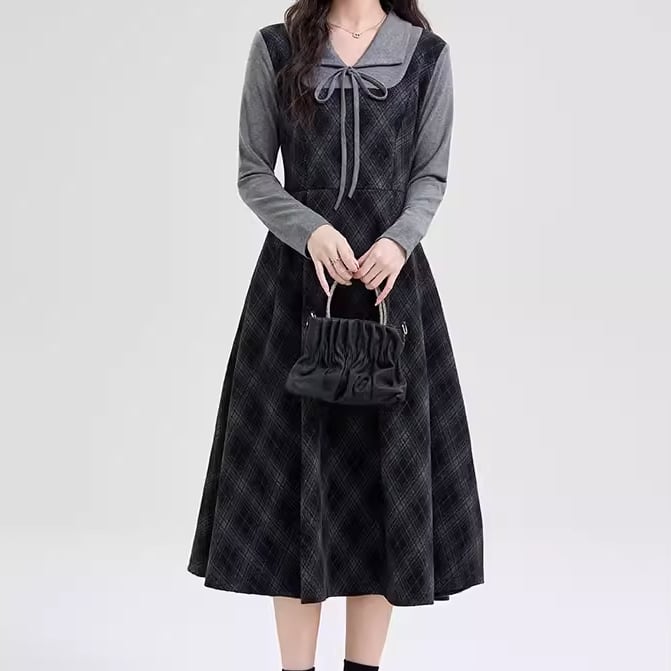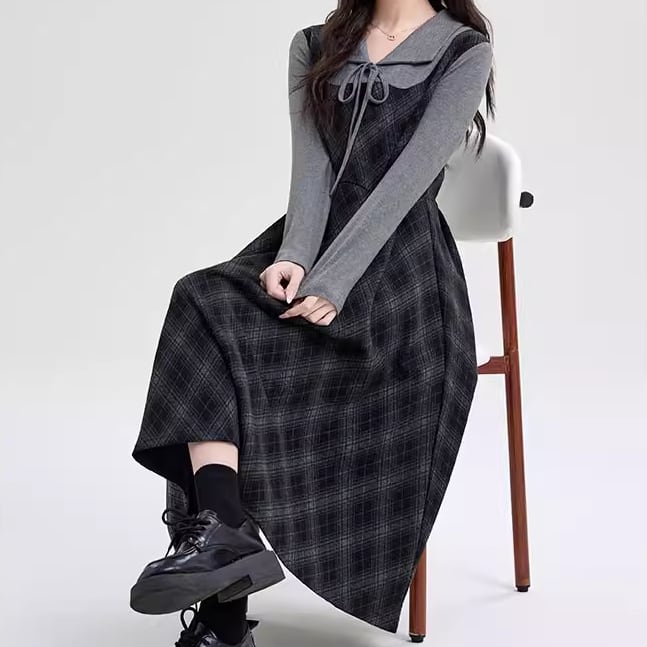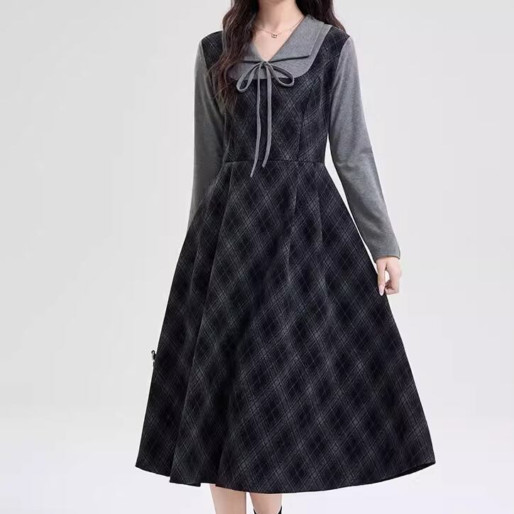 ポロカラーアーガイルニットワンピース ・72278