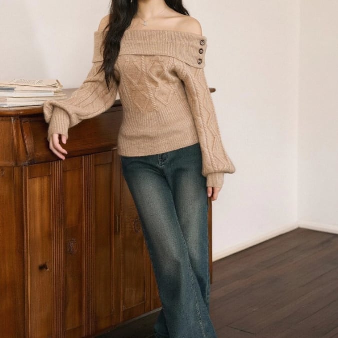 チャイナデザインバイカラーニット ・74625