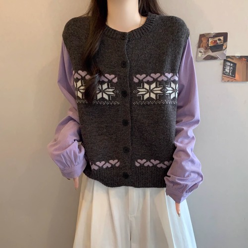 レースカラーアシメボタンドッキングトップス ・71106