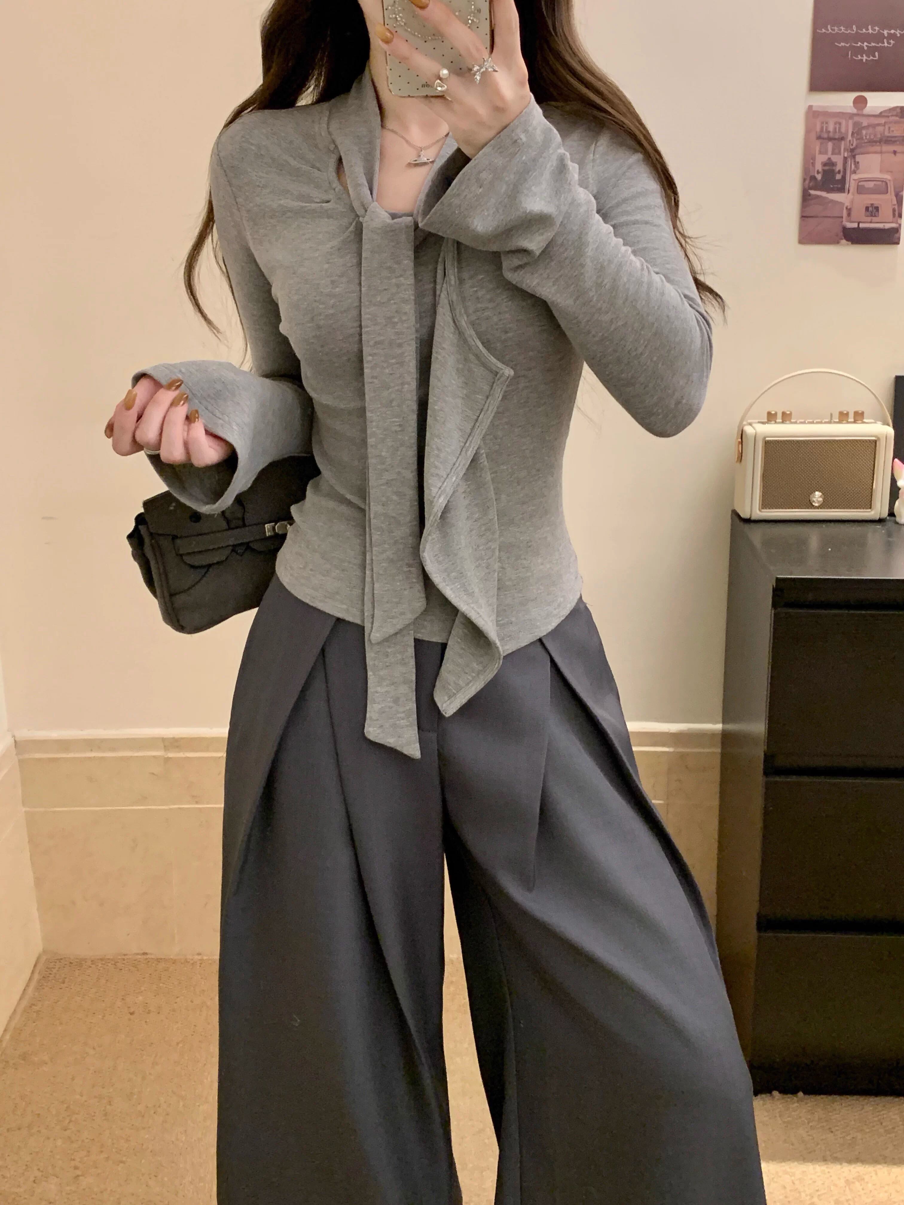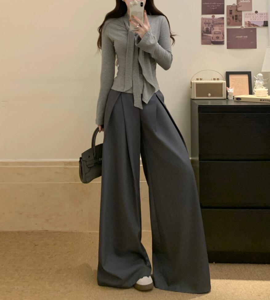 【2点セット】3色/リボンノーボタンカーデ+フリルペプラムキャミソール ・74597