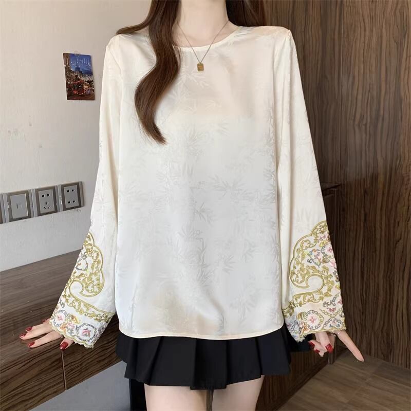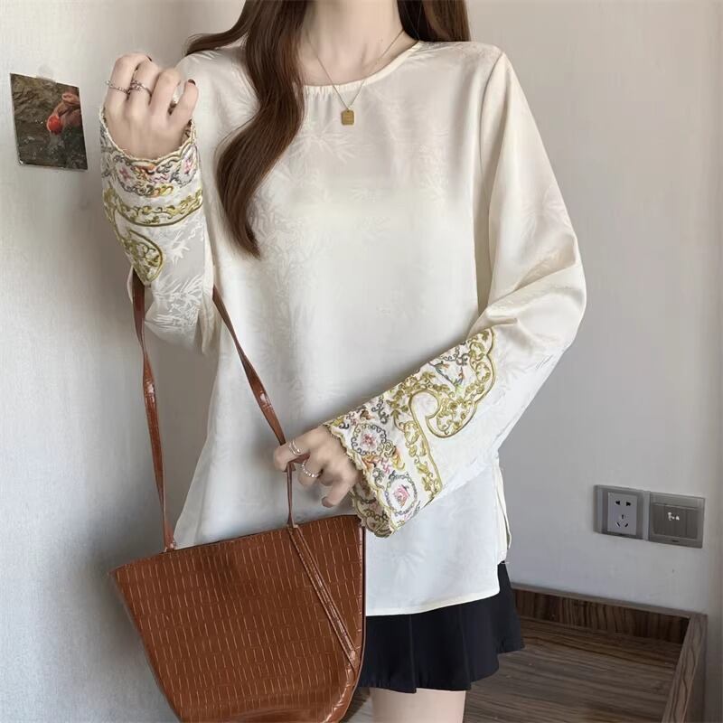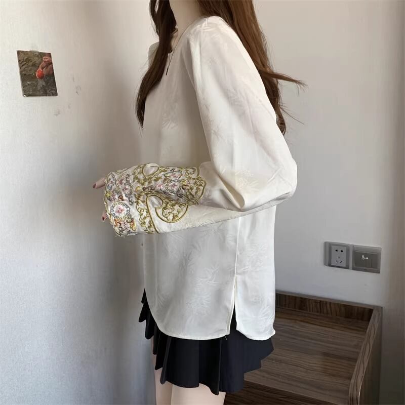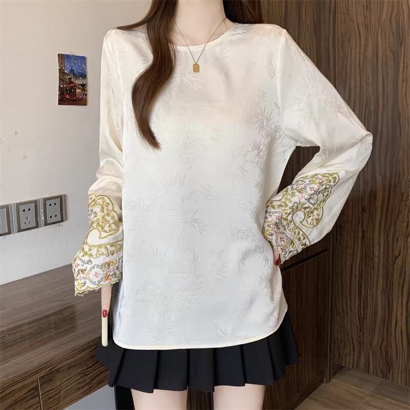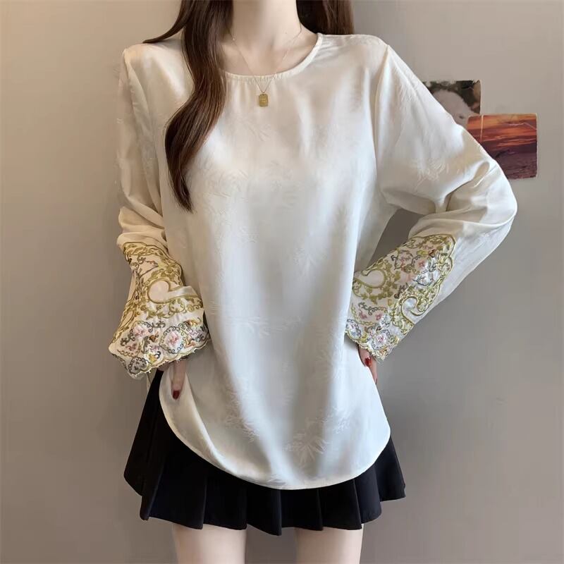 レースカラーアシメボタンドッキングトップス ・71106