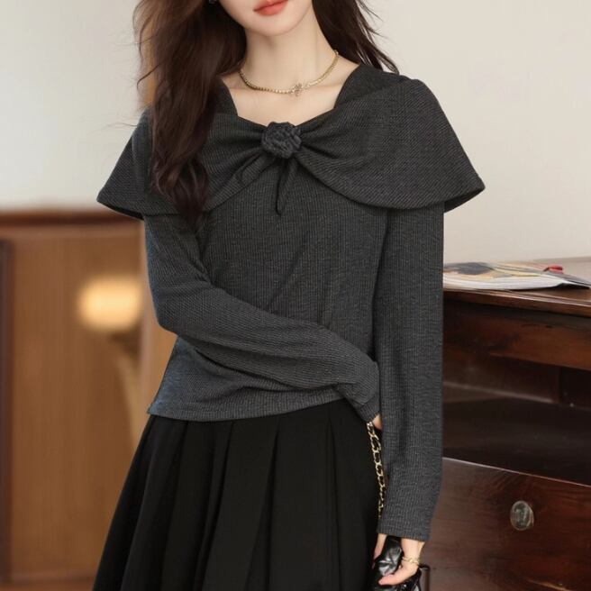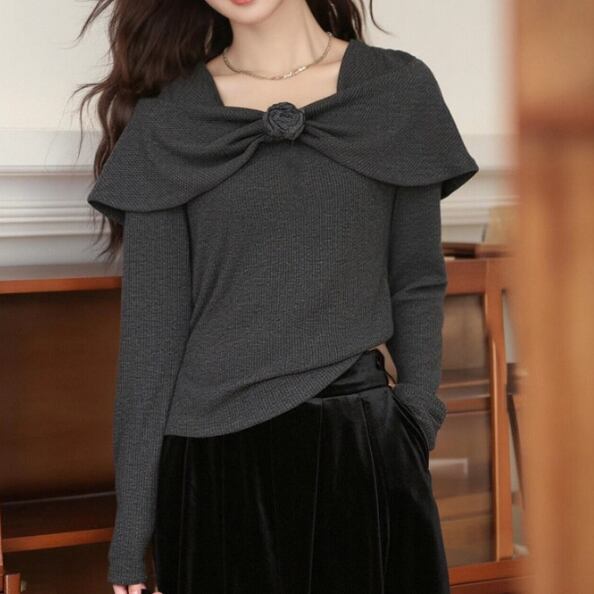 3色/ドレープネックアシメヘムカットソー ・74598