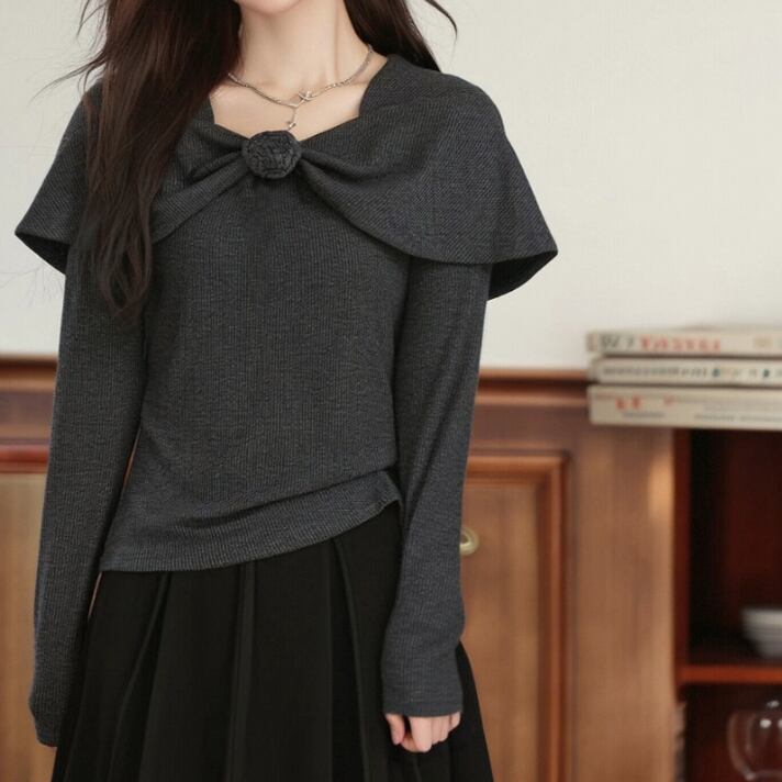 レースカラーアシメボタンドッキングトップス ・71106