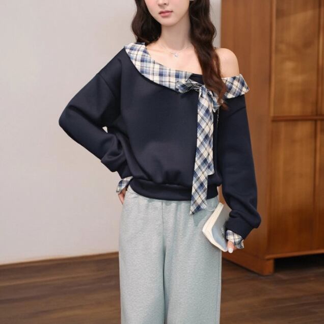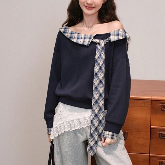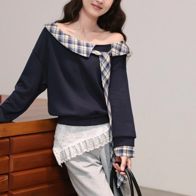 レースカラーアシメボタンドッキングトップス ・71106