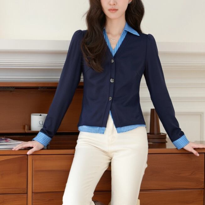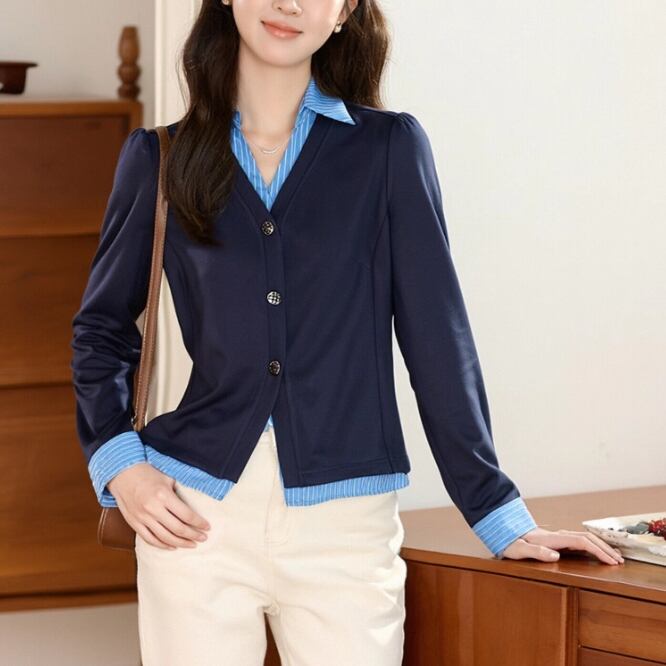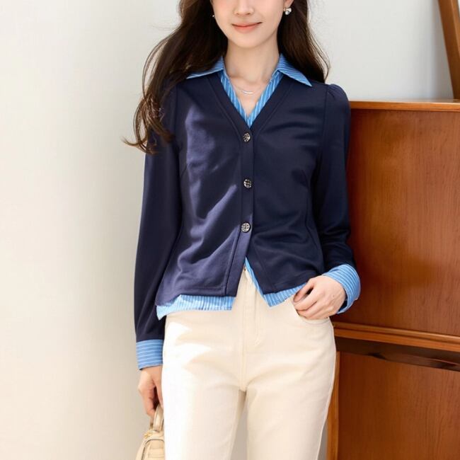 レースカラーアシメボタンドッキングトップス ・71106