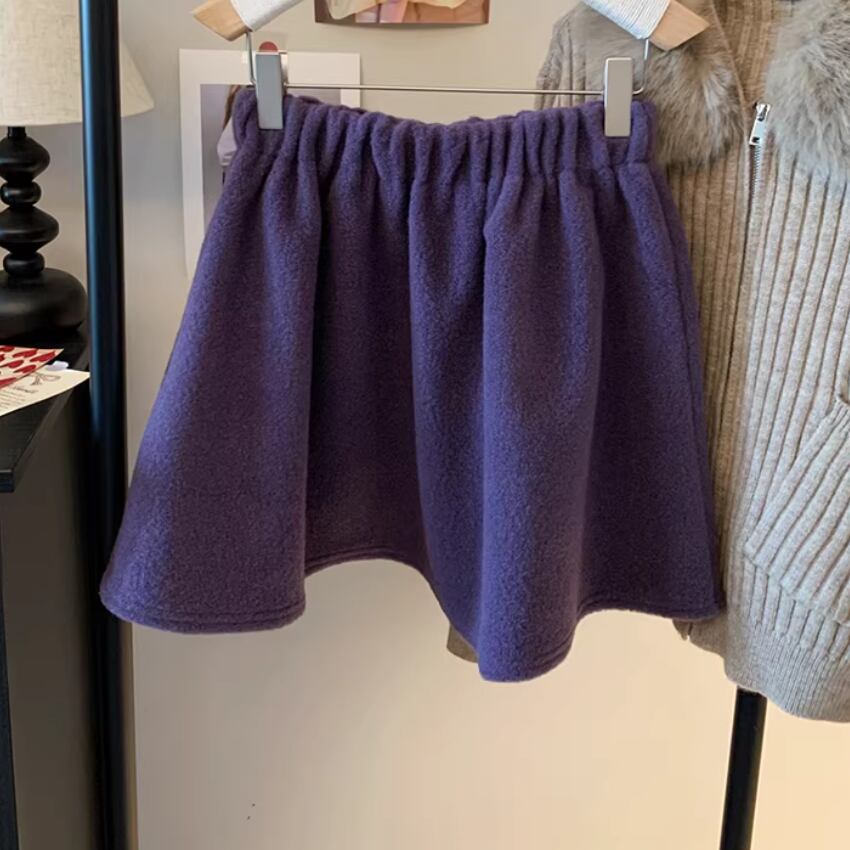 3色/ウールタッチアシメダブルボタンミニスカート ・74407