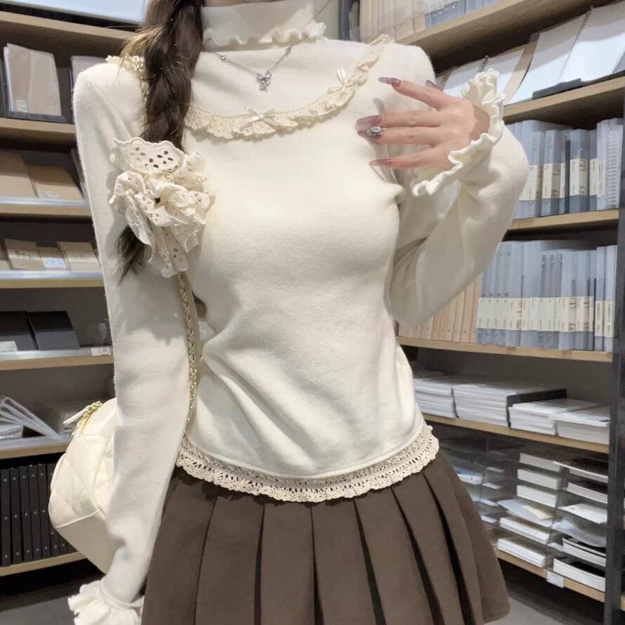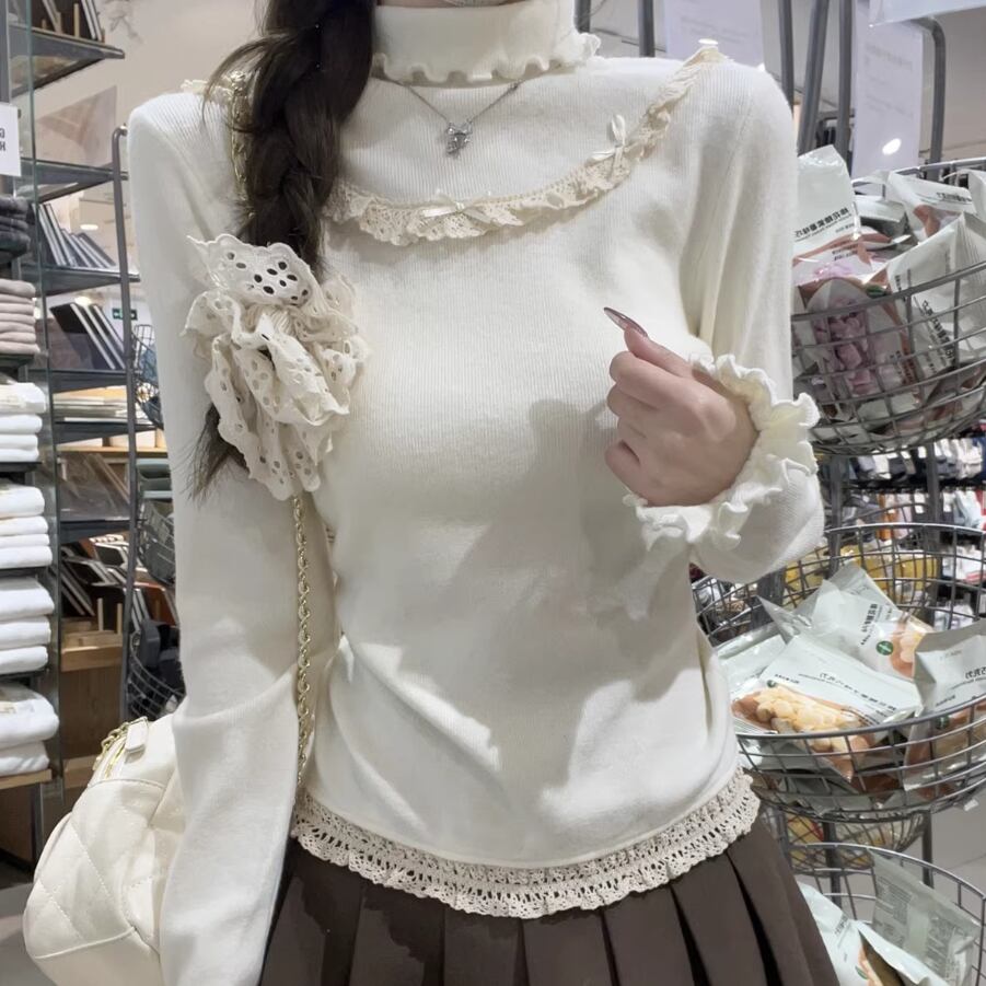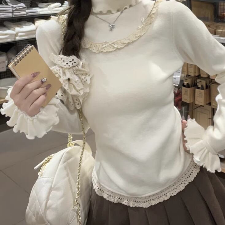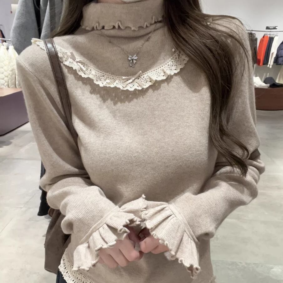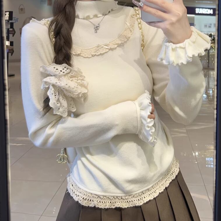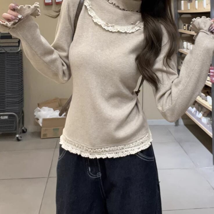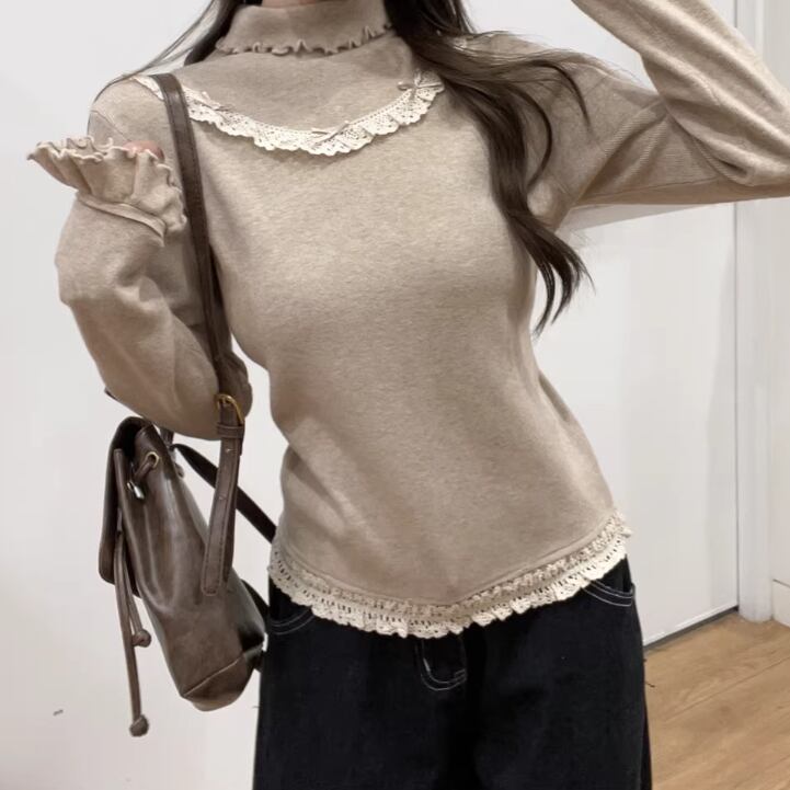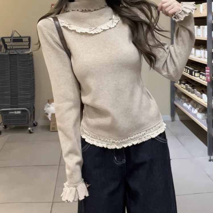 レースカラーアシメボタンドッキングトップス ・71106