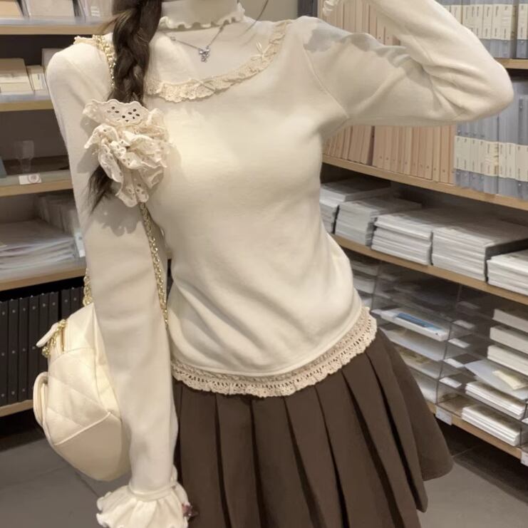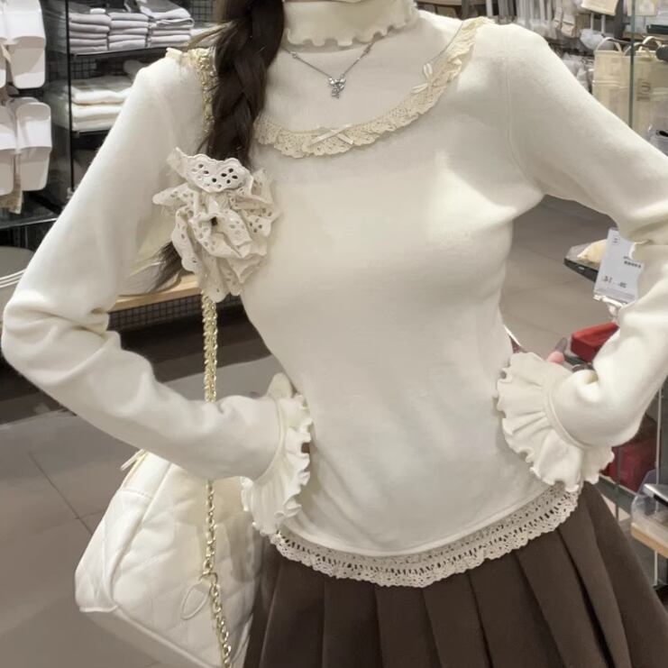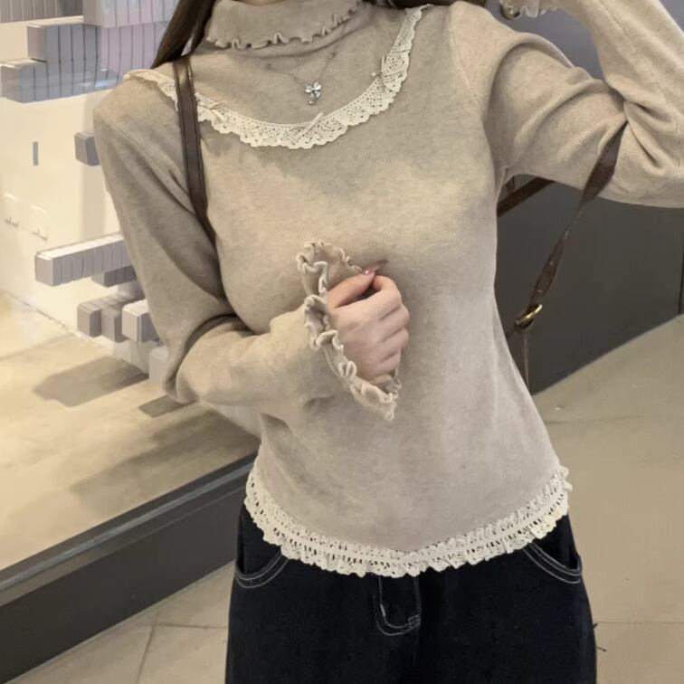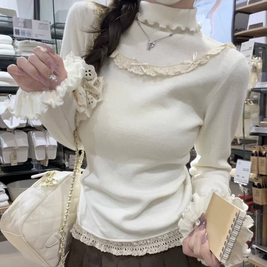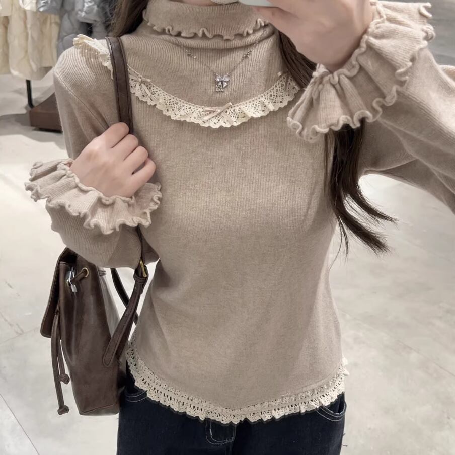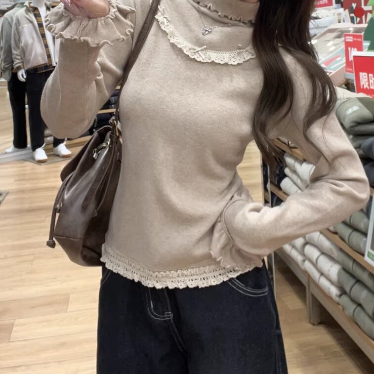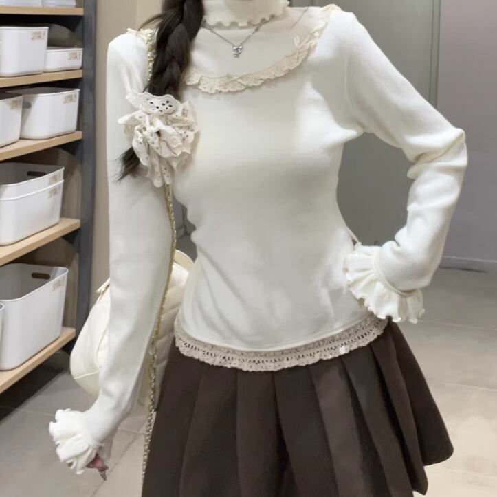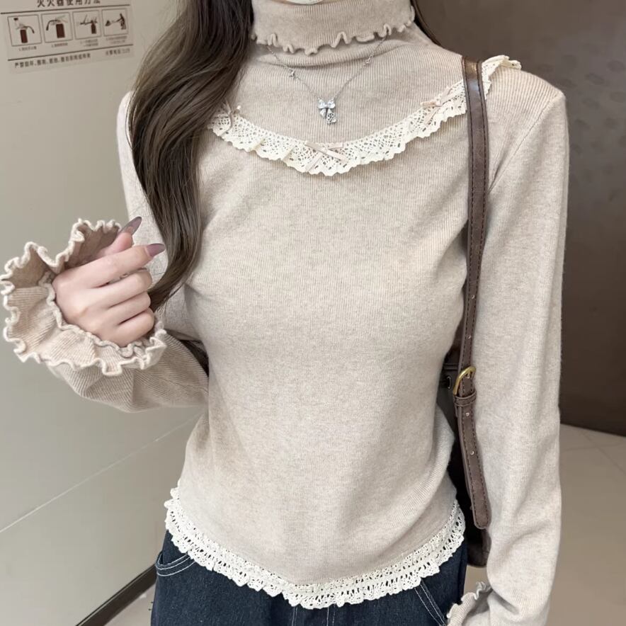 レースカラーアシメボタンドッキングトップス ・71106