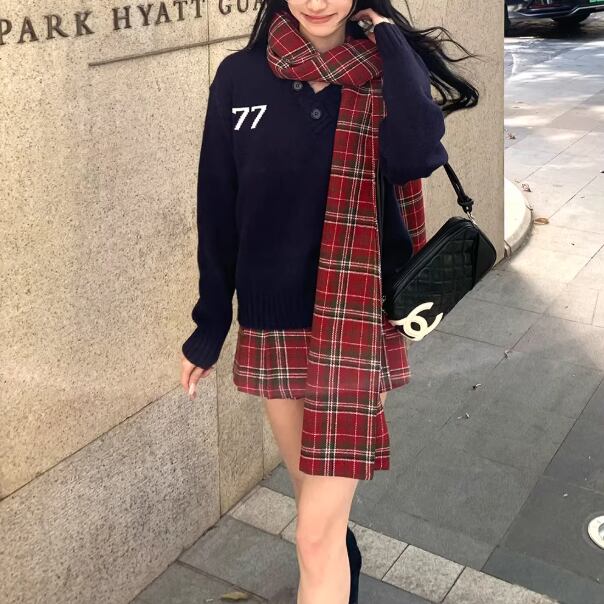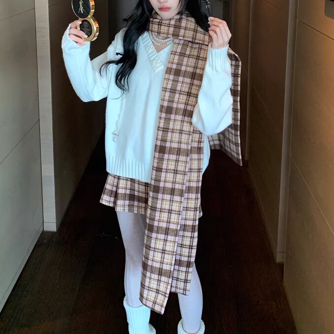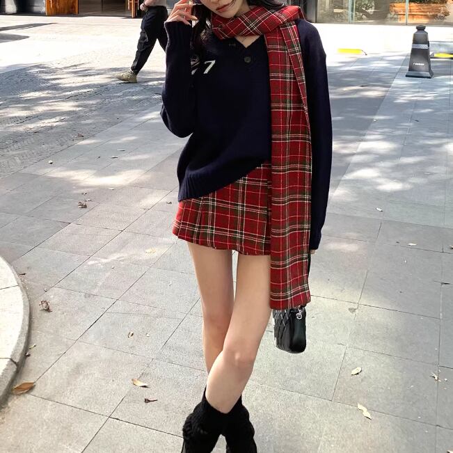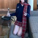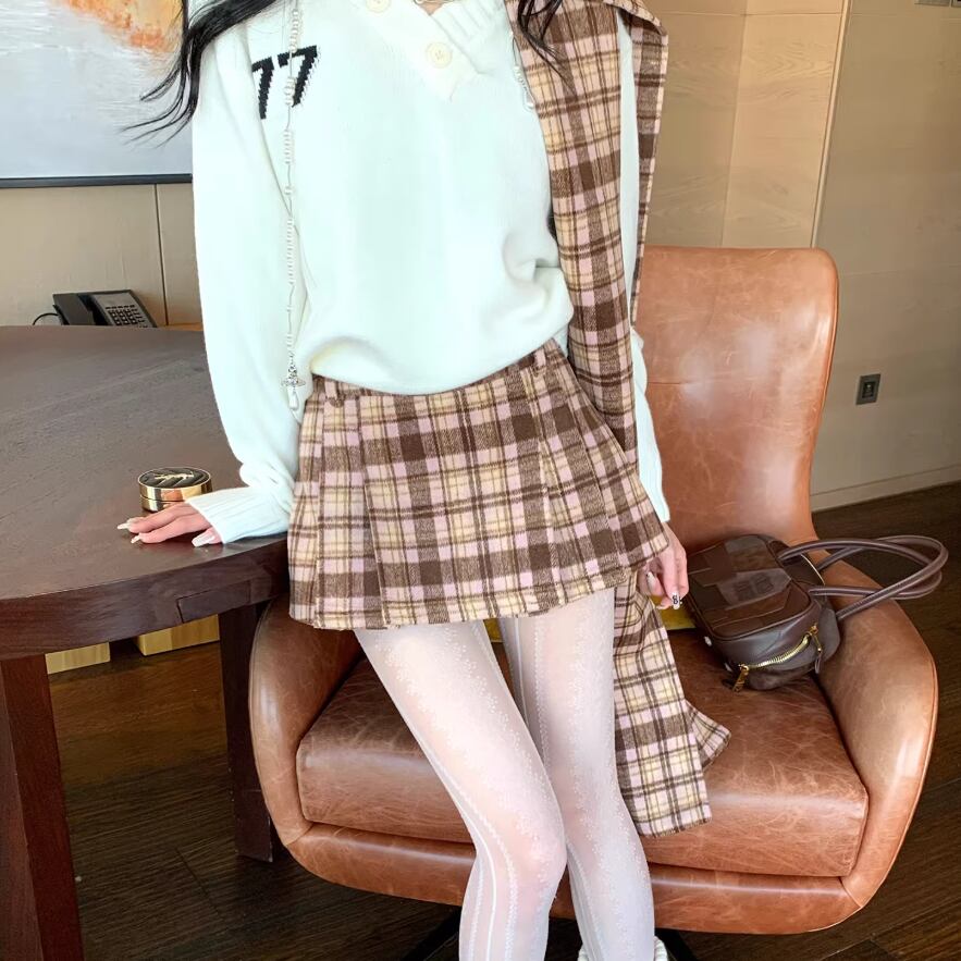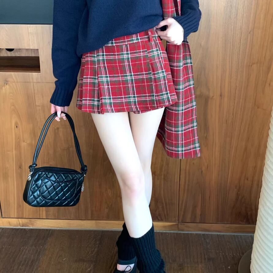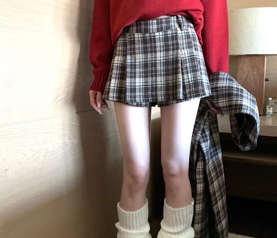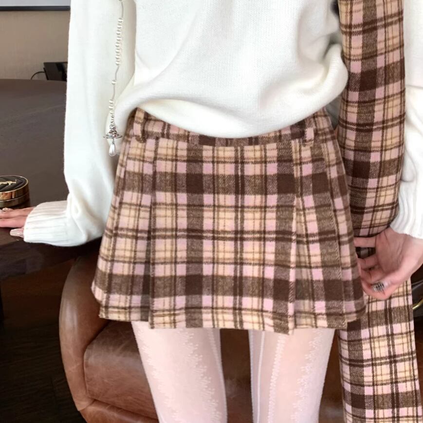 【2点セット】チェック柄ミニスカパン+ベルト ・74329